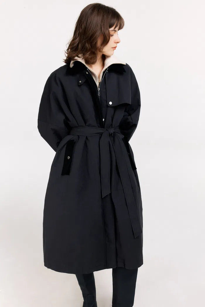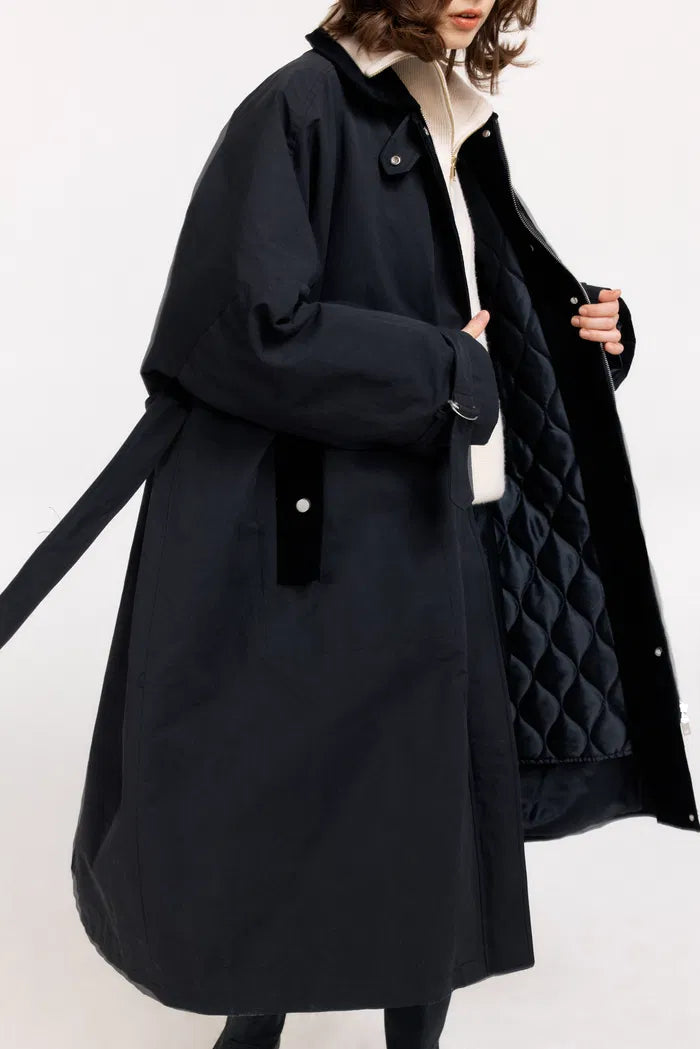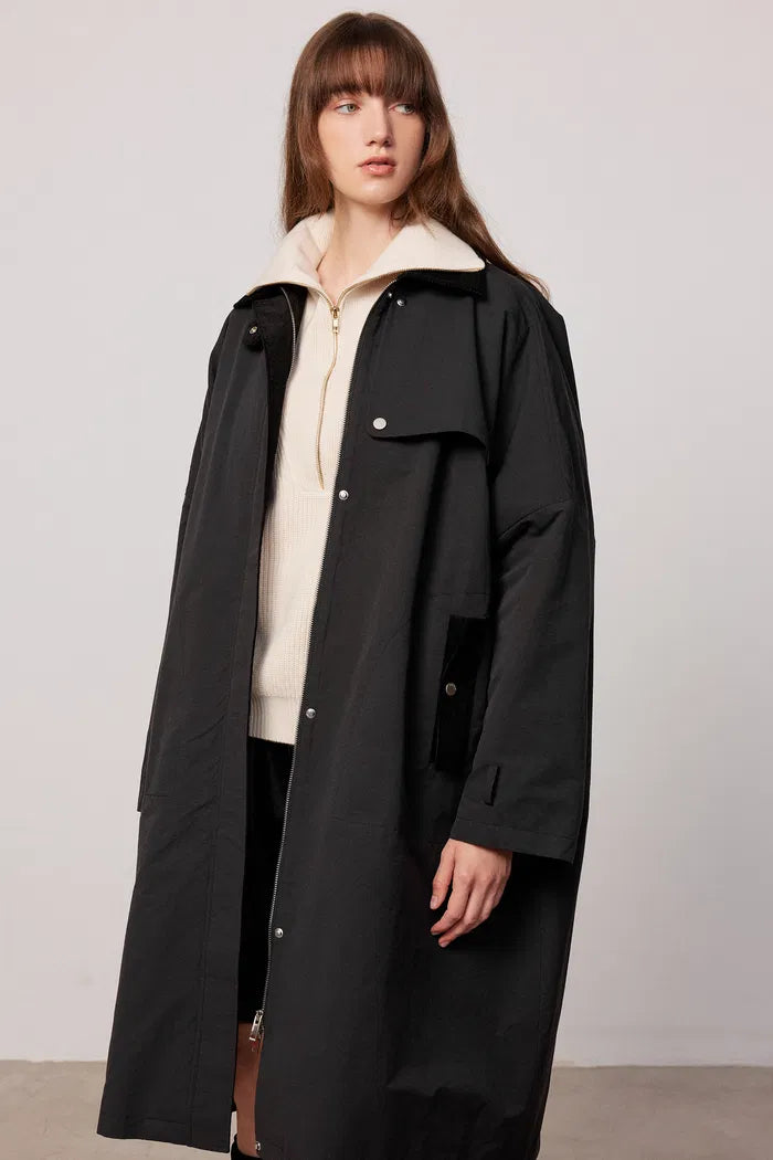Almanarre Corduroy Paneled Quilted Trench Coat