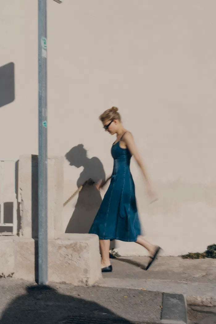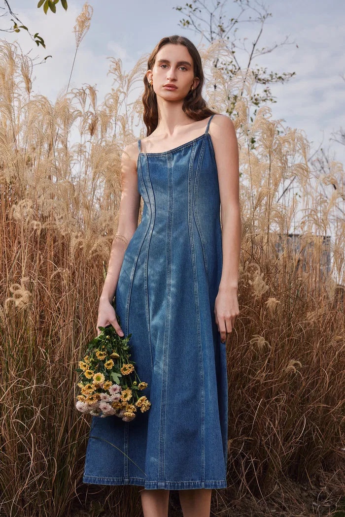 Carmelia Pinafore Dress in Cotton Denim