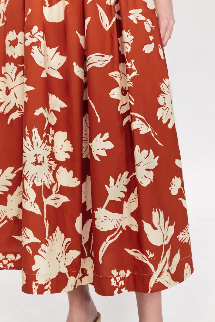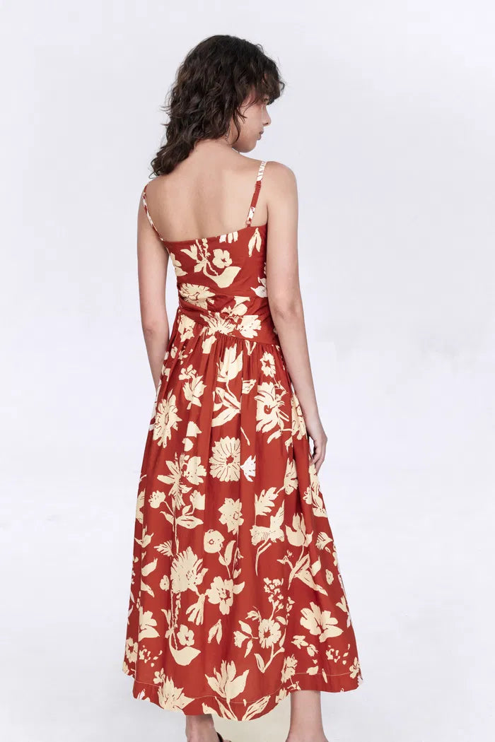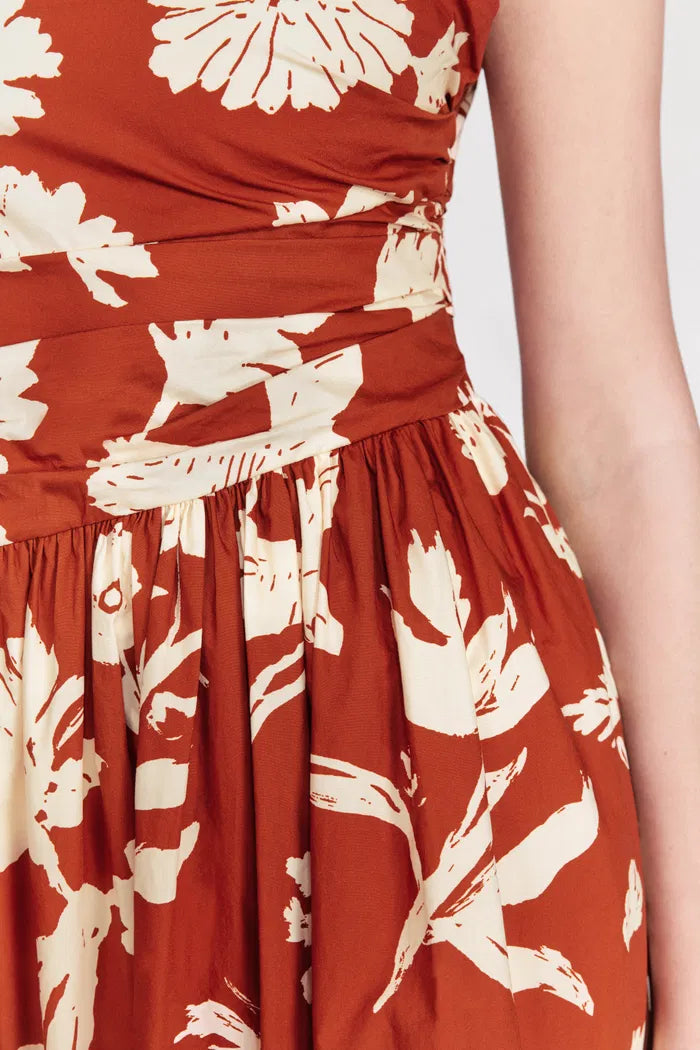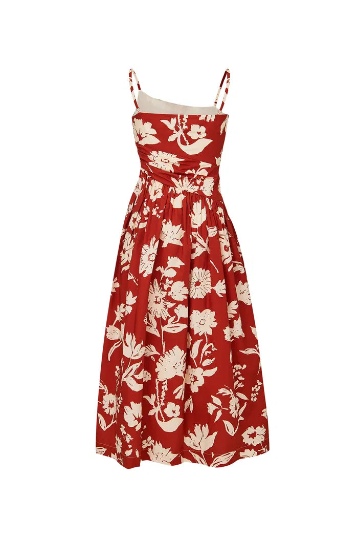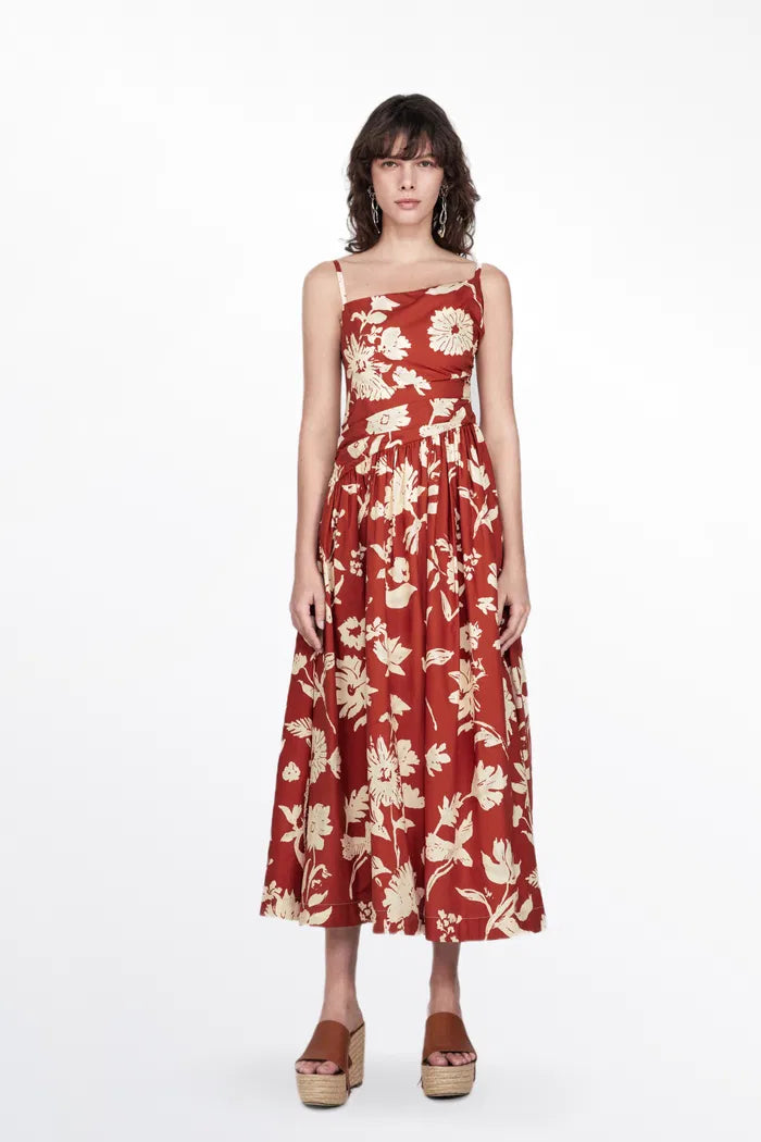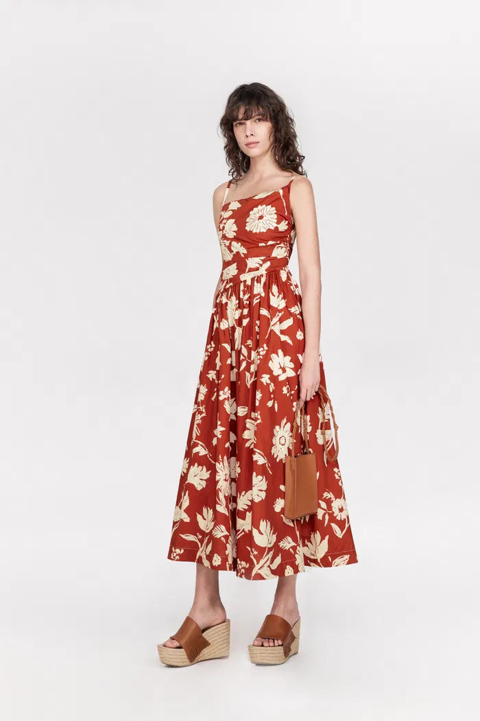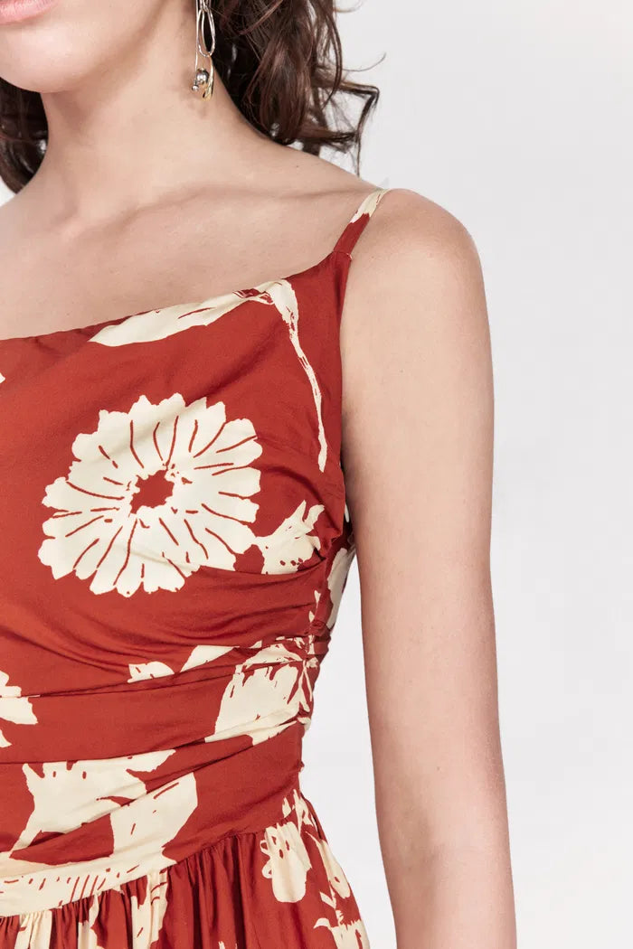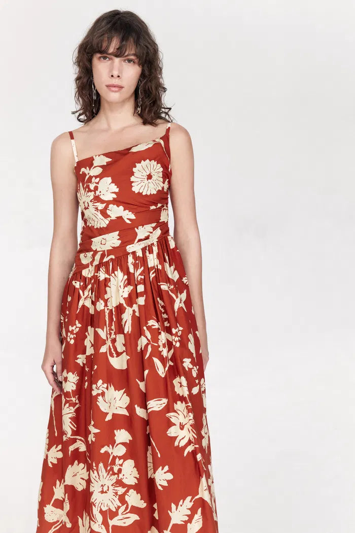 Sienna Asymetrical Strap Flora Print Cami Dress in Matte Cotton