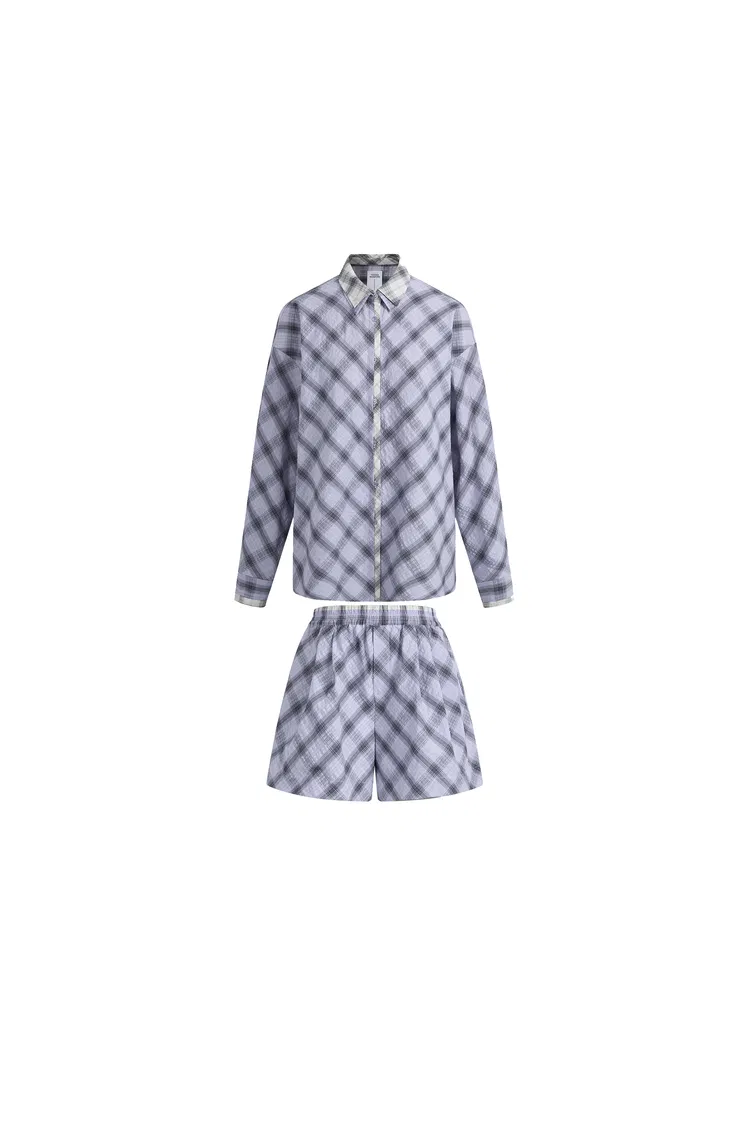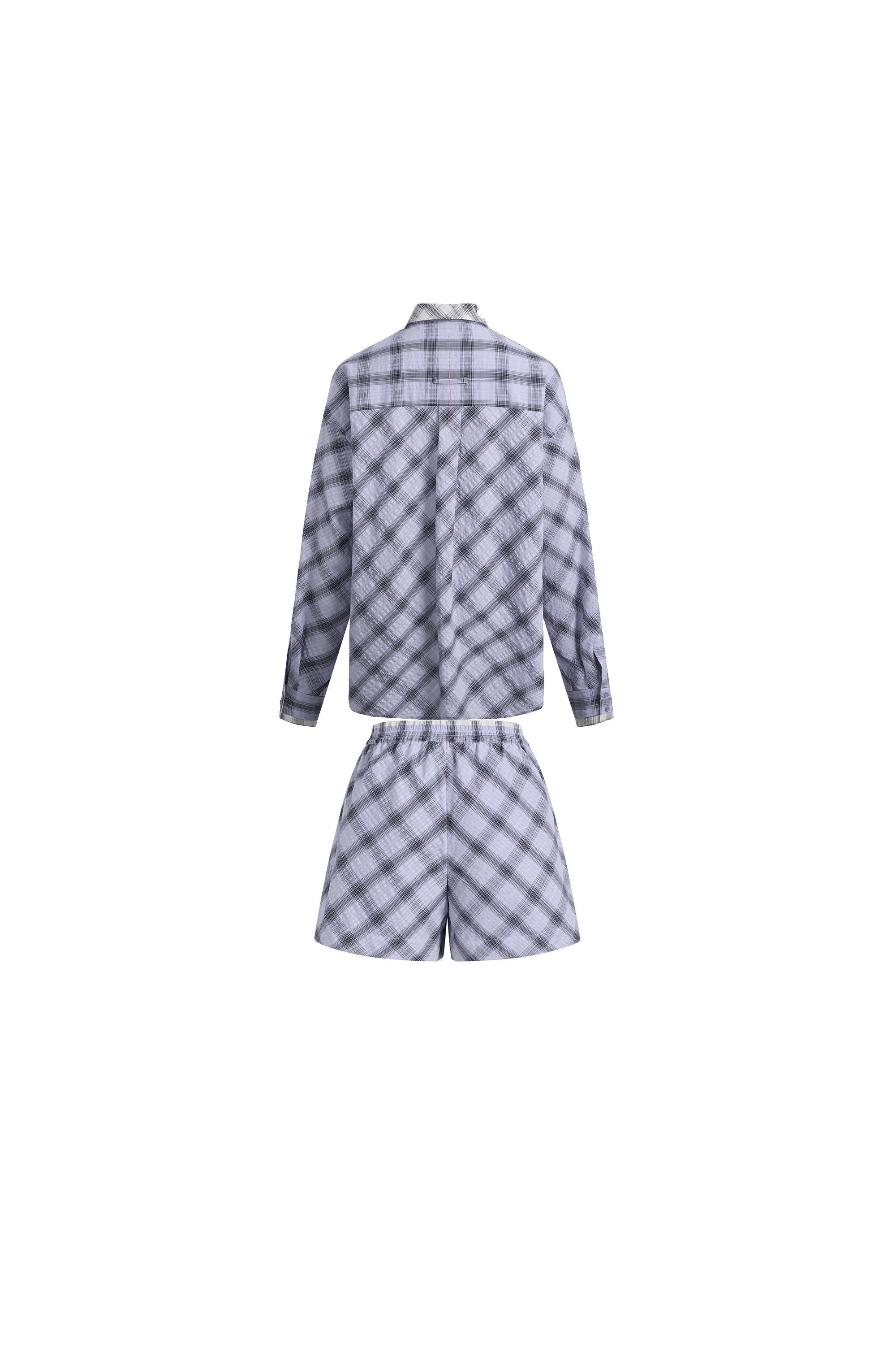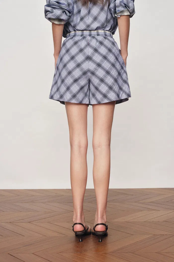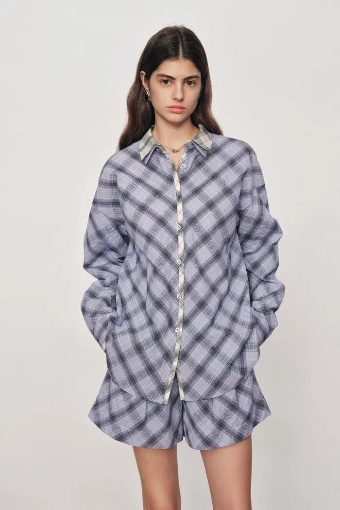 Lia Kariertes Hemd- und Shorts-Set im Lagenlook aus Bubble-Baumwolle