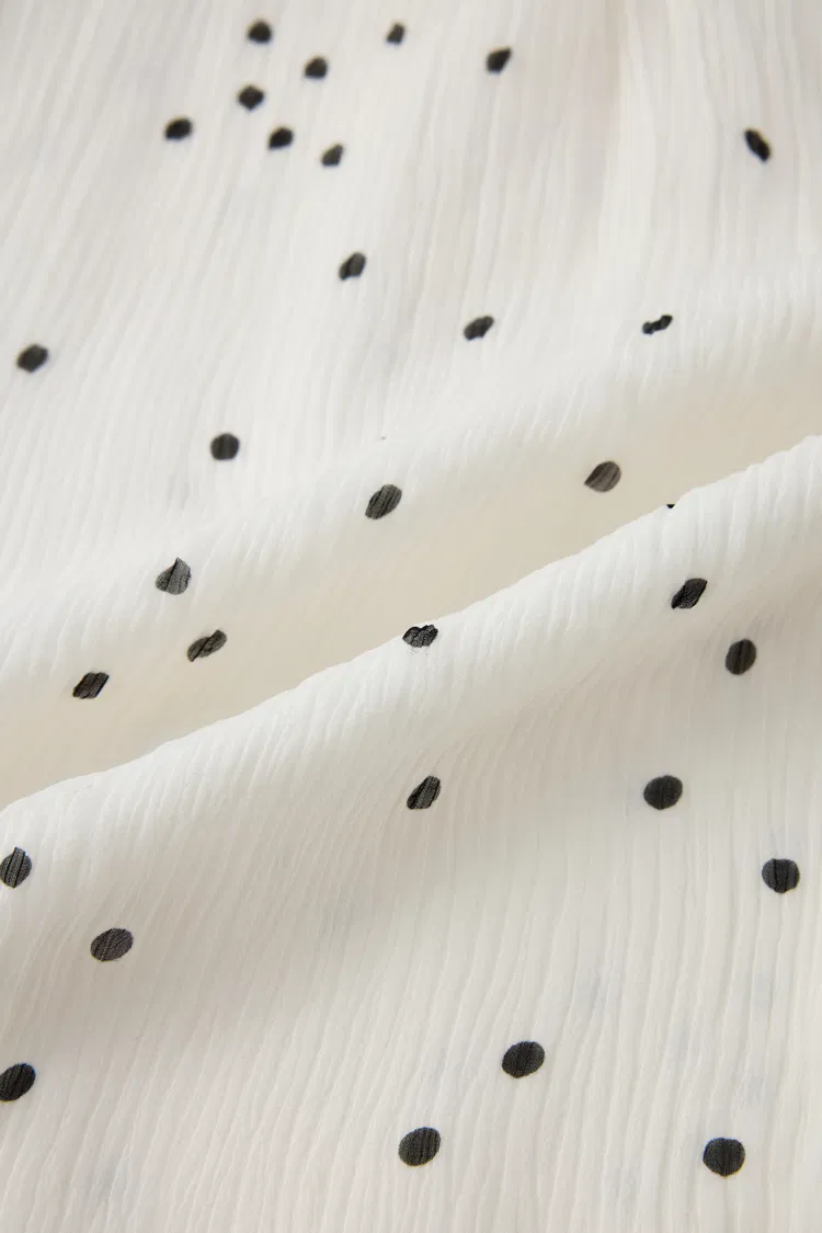 Gekräuselte Seiden-Georgette, die sich natürlich mit der Bewegung dehnt. Atmungsaktiv und leicht, trägt sich kühler als Standard-Transparenzstoffe. Das matte Finish verleiht ihm einen weichen, lässigen Look für Frühling und Sommer.
