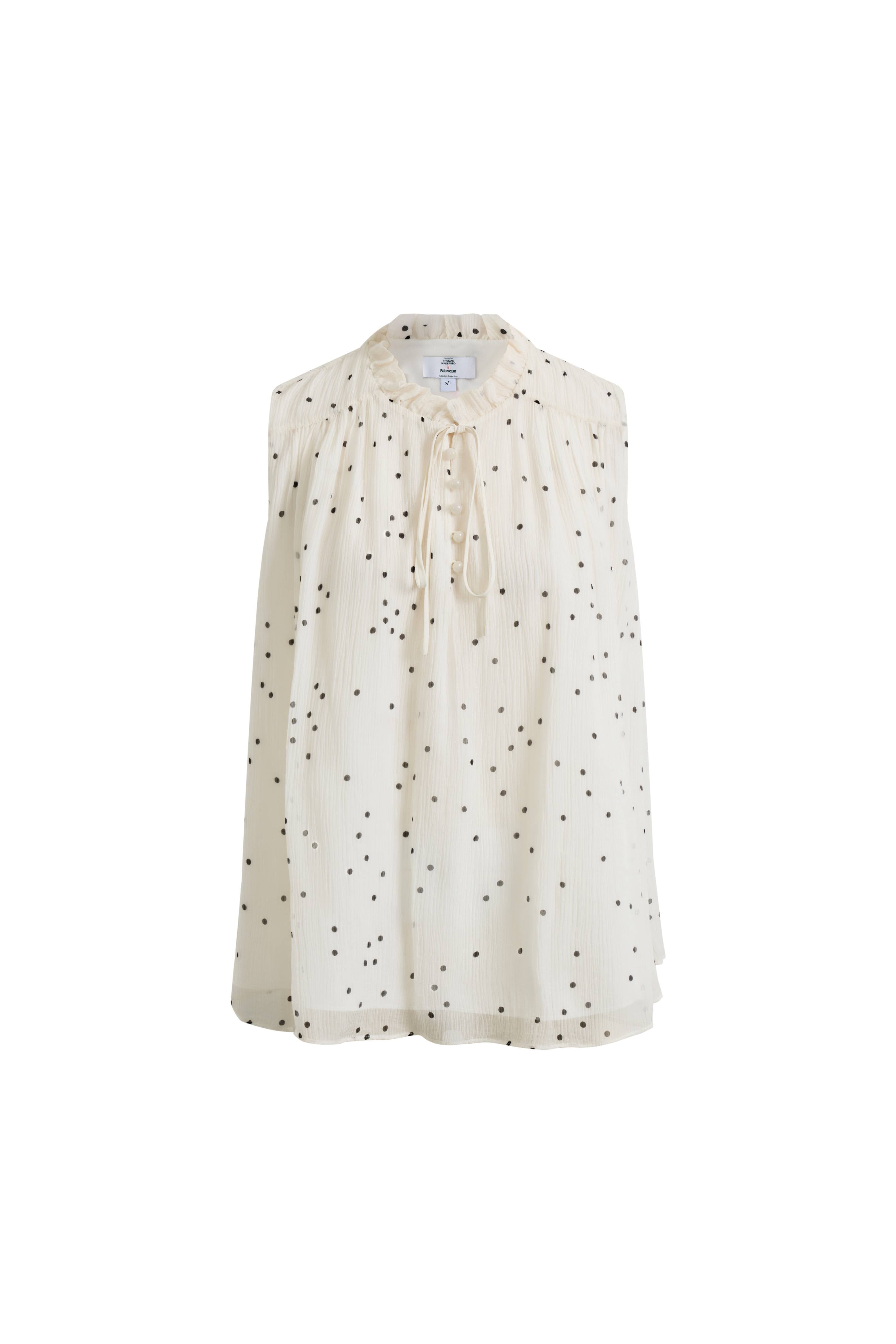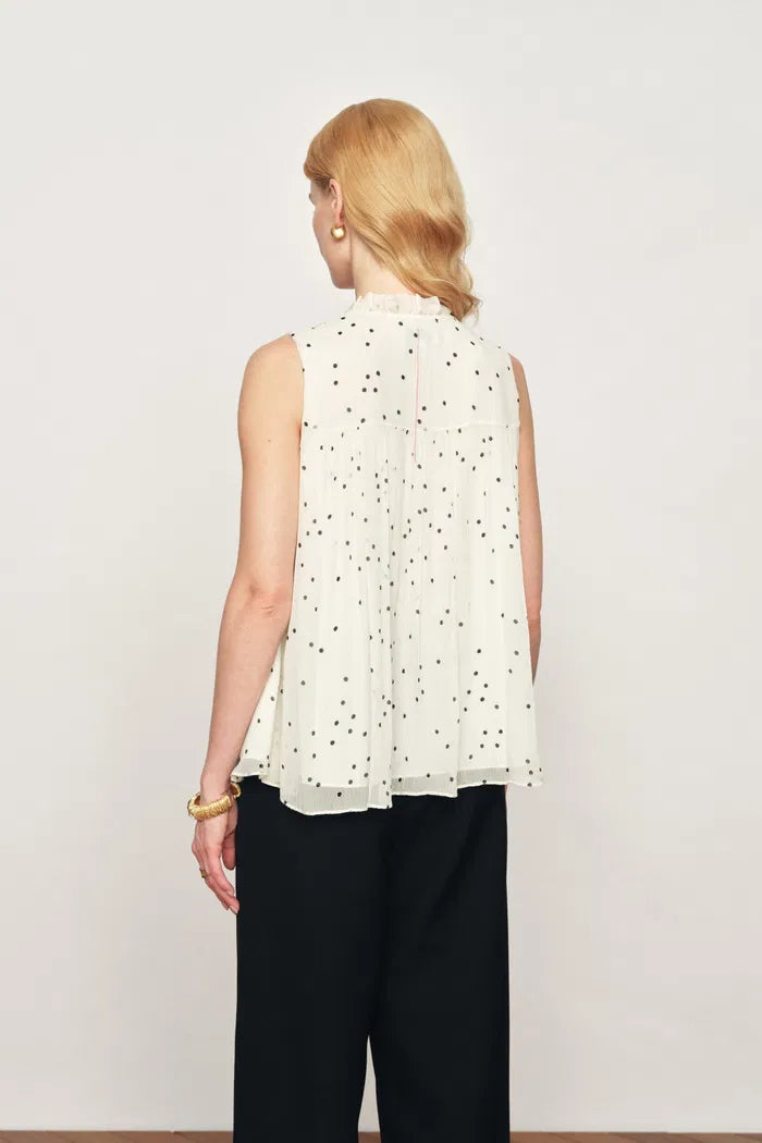 Anaïs ärmellose Bluse mit Polka-Dots und Falten aus Seiden-Georgette