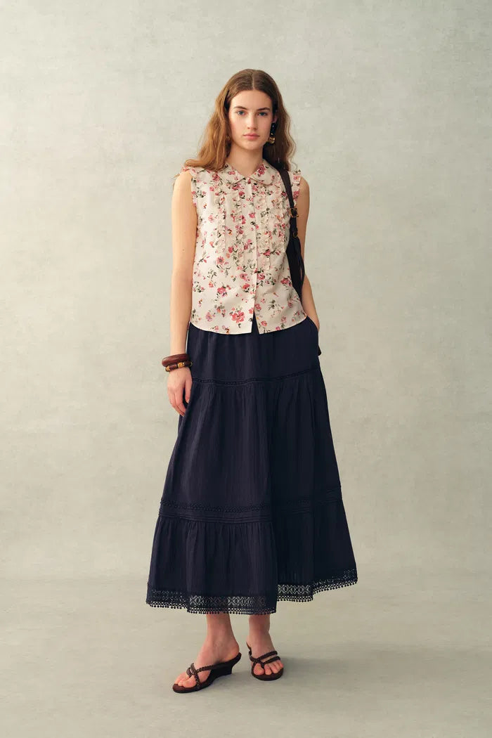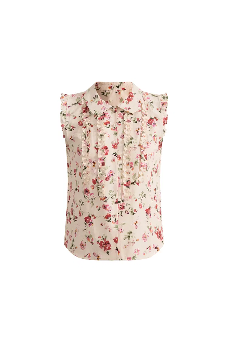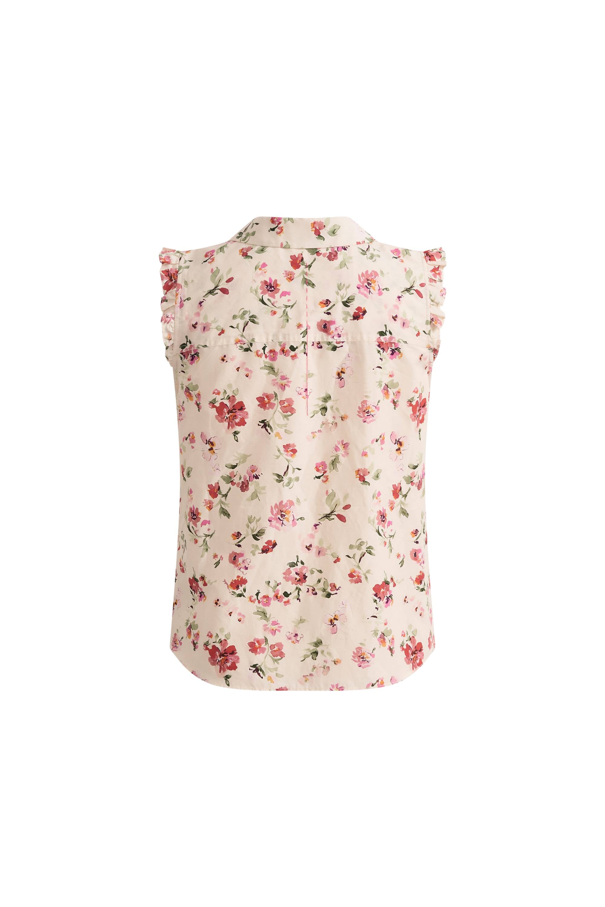 Ursa Ärmelloses Top mit handbemaltem Blumenmuster aus Seiden-Baumwoll-Mix