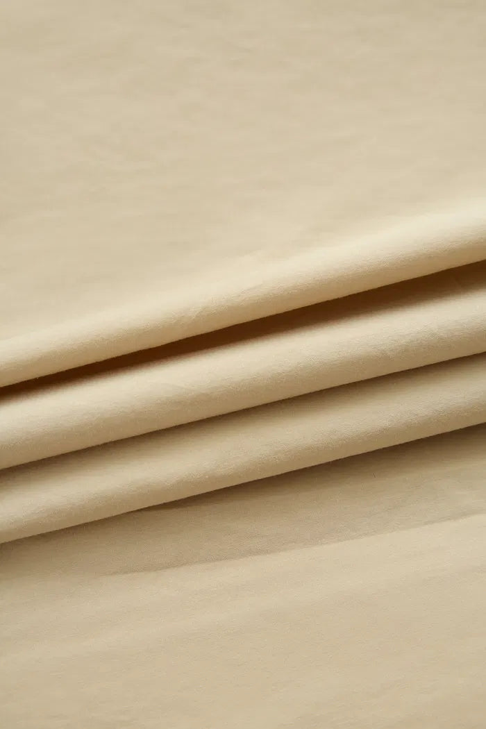 Klassischer Stoff. Trockenes, weiches Gefühl. Leichte Struktur für eine 3D-Silhouette. Einfach zu tragendes helles Khaki.