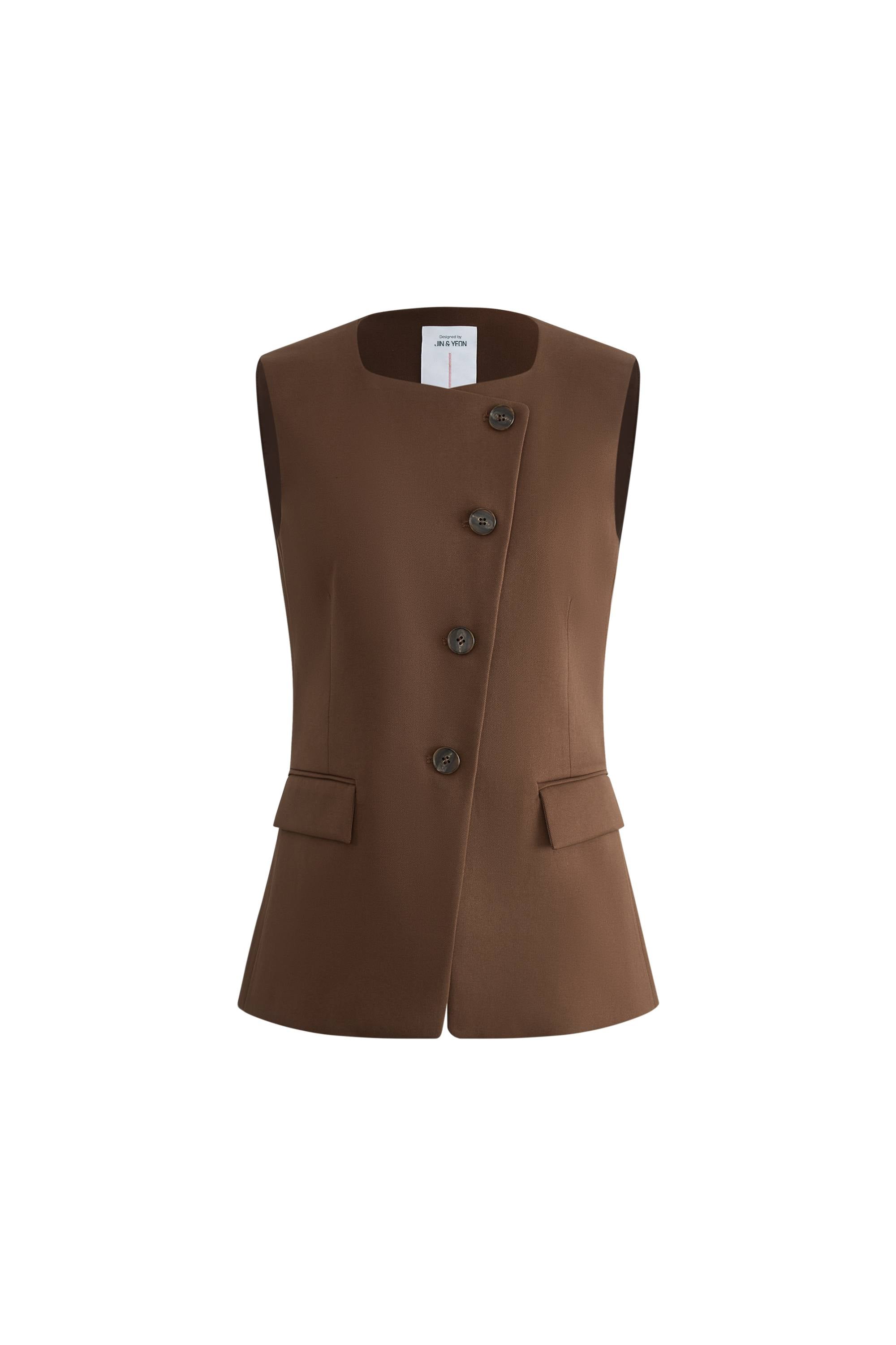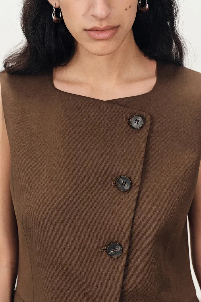 Claire ärmelloses Weste-Top mit schräger Knopfleiste und quadratischem Ausschnitt aus leichtem Anzugstoff