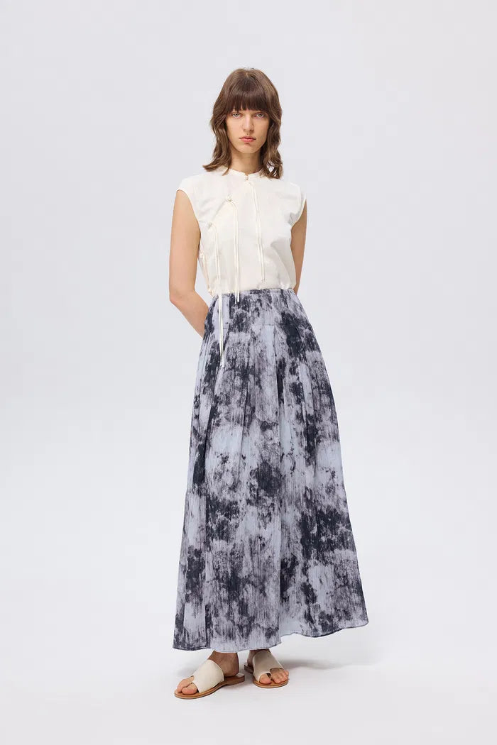 Verziert mit abstrakten Tuschewaschdrucken. Die elegante, fließende Silhouette und der bequeme elastische Bund machen es ideal für Abendveranstaltungen und verbinden Raffinesse mit Komfort.