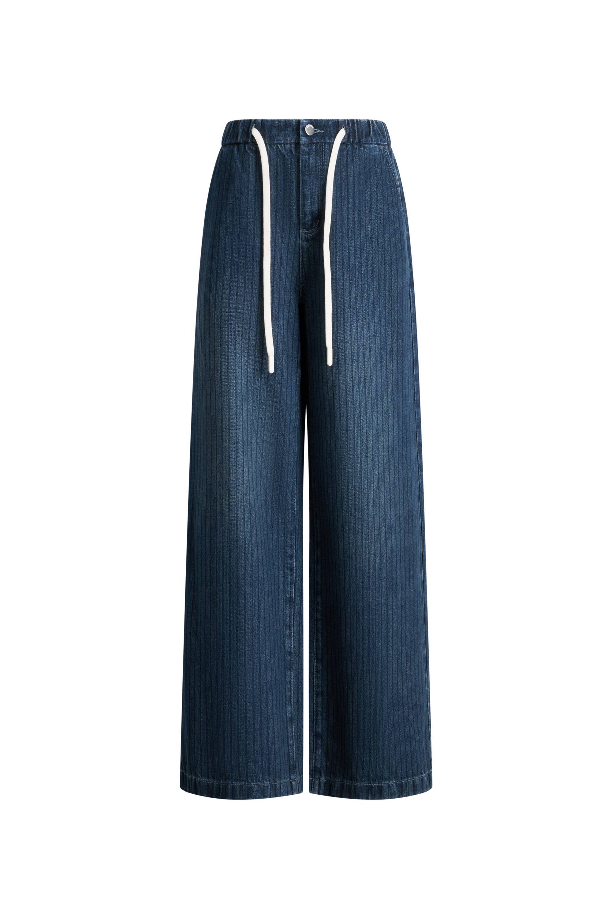 Baumwoll-Jacquard-Denim mit vertikaler Streifenstruktur und Wasserwasch-Färbung. Schafft einen edlen, intensiven Verblassungseffekt und macht den Stoff weicher und angenehmer.