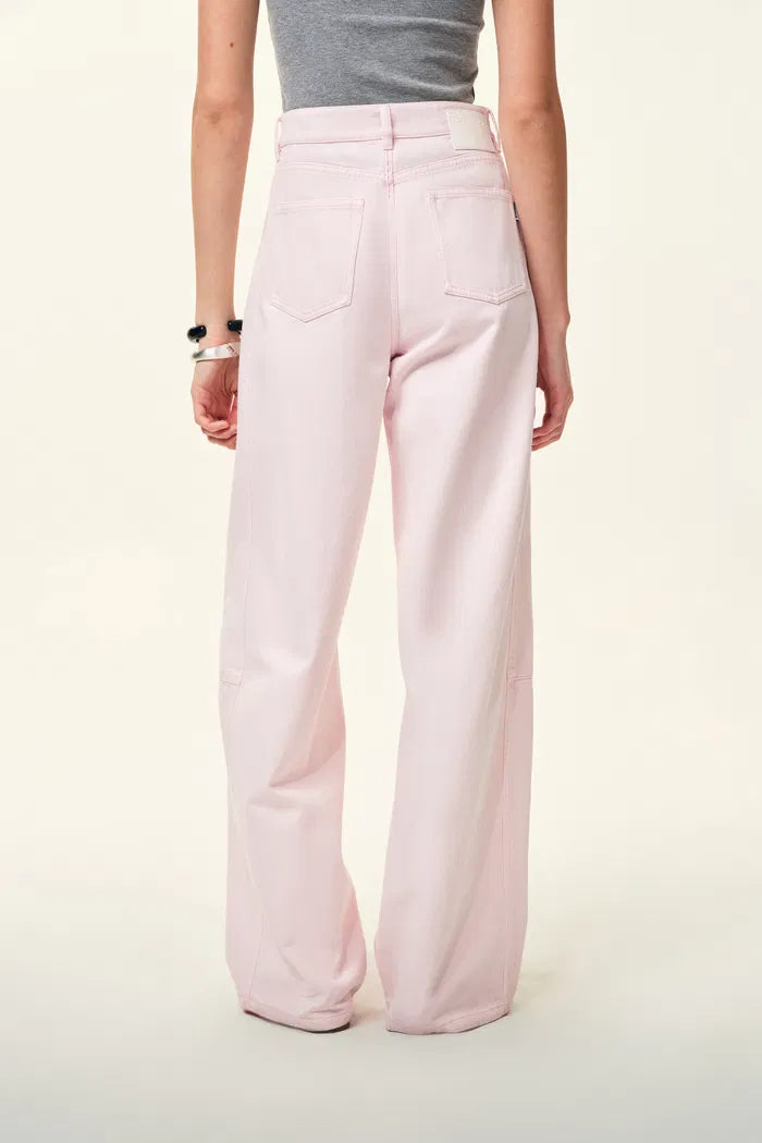 Dieses hellrosa DENIM-Hemd verwendet eine architektonische Silhouette, die die Lücke zwischen Jacke und Bluse schließt. Doppelte Brusttaschen und ein klarer Schnitt machen es zu einer smarten, funktionalen Ergänzung für die Frühlingsgarderobe. Diese Hufeisen-Jeans zeichnen sich durch eine geschwungene Außennaht aus, die eine entspannte, luftige Silhouette schafft. Der hellrosa Waschungston und die hochgeschnittene Passform bieten eine frische, feminine Perspektive auf eine trendige, architektonische Form.