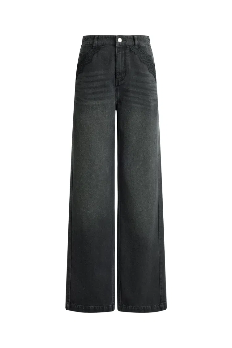Diese Jeans vereinen romantische Spitzenverzierungen mit einer klassischen, gerade geschnittenen Wide-Leg-Silhouette. Der weich gewaschene Baumwoll-DENIM macht sie alltagstauglich und sorgt für ein edles Finish.