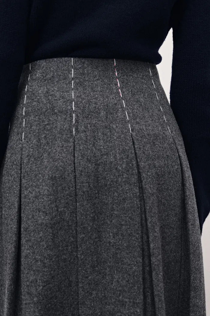 Ava Handgearbeiteter Blazer und Rock mit Kontrastnähten aus australischer Merinowolle