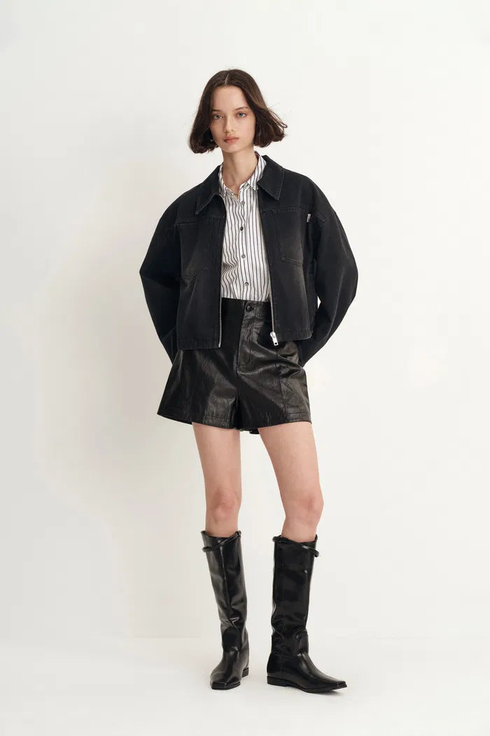 Pike Vintage-Waschung Boxy Cut Jacke aus Baumwoll-Denim
