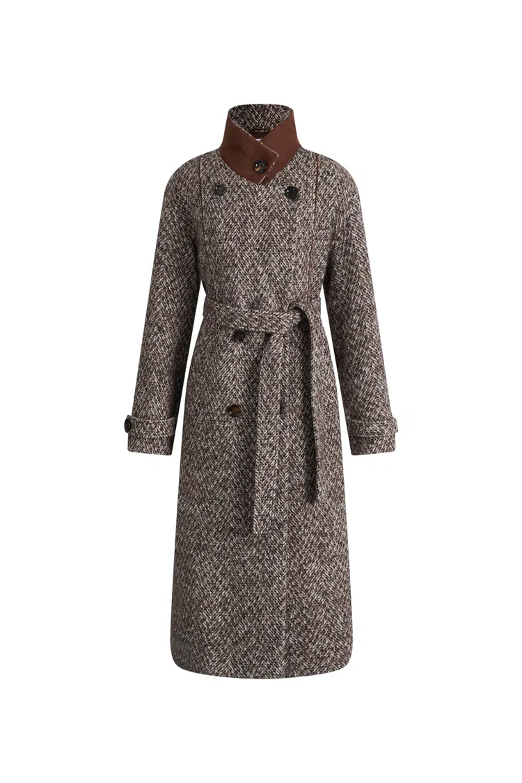 Audrey Plaid Wool Coat in Herringbone Merino Wool