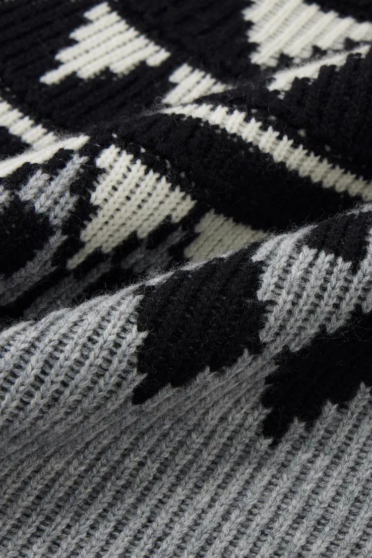 - Black/White/Grey Yarn:48.8% Wool 29.6% Polyester 21.6% Nylon
