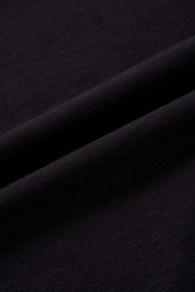 Cotton-modal knit with good stretch and recovery. Soft and breathable, it wraps the body comfortably without feeling tight. The textured folds move with your shape, and the clean, tailored cut keeps the look smooth and elegant through daily wear.