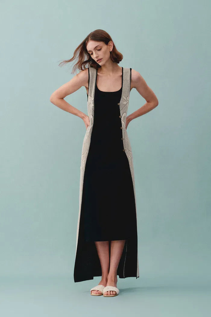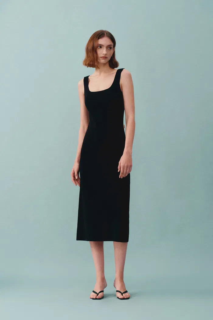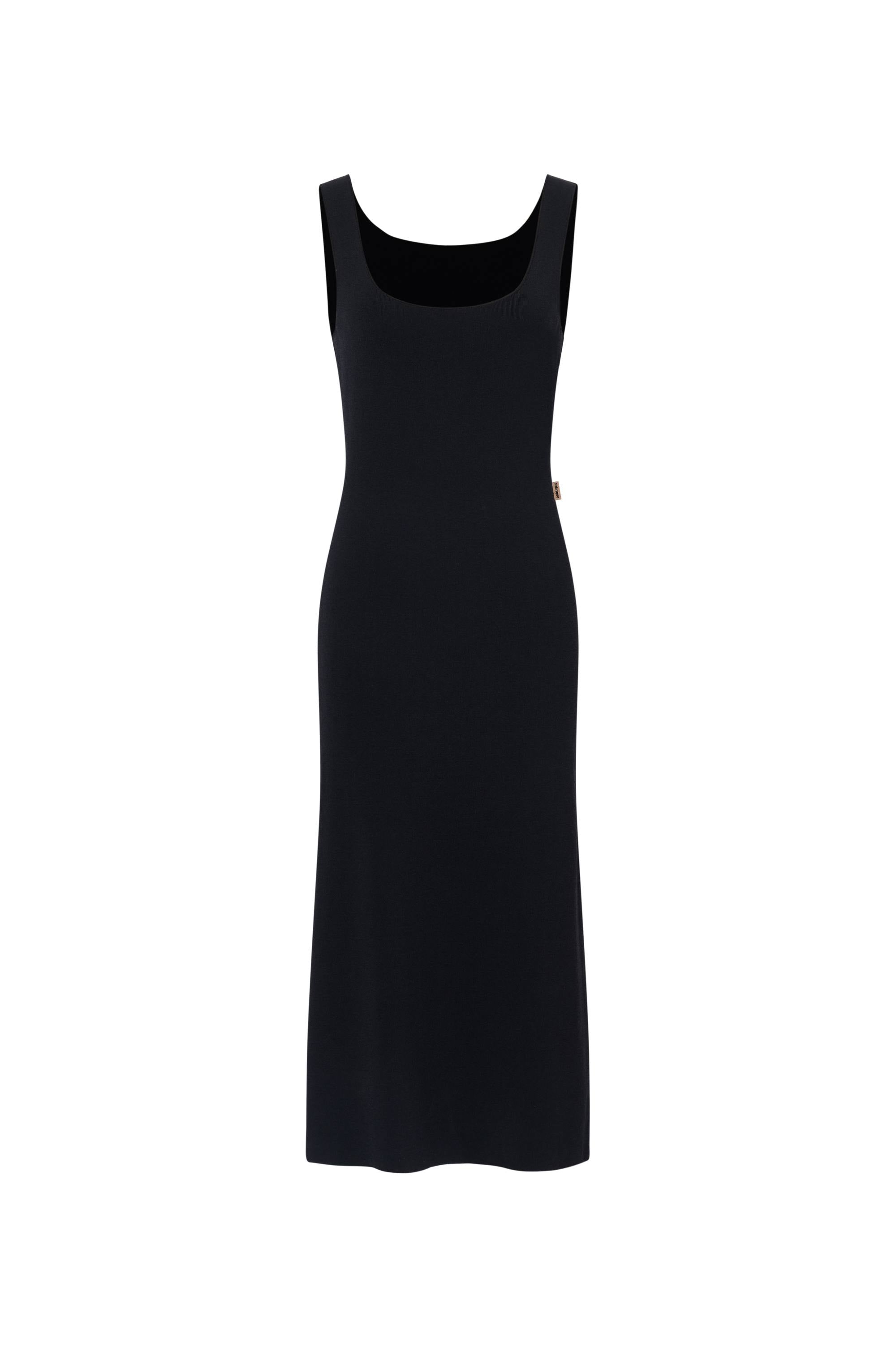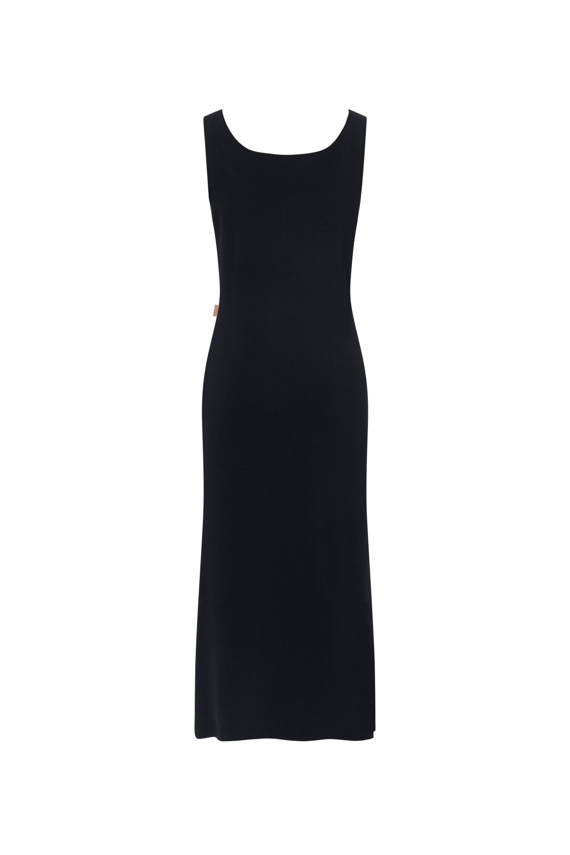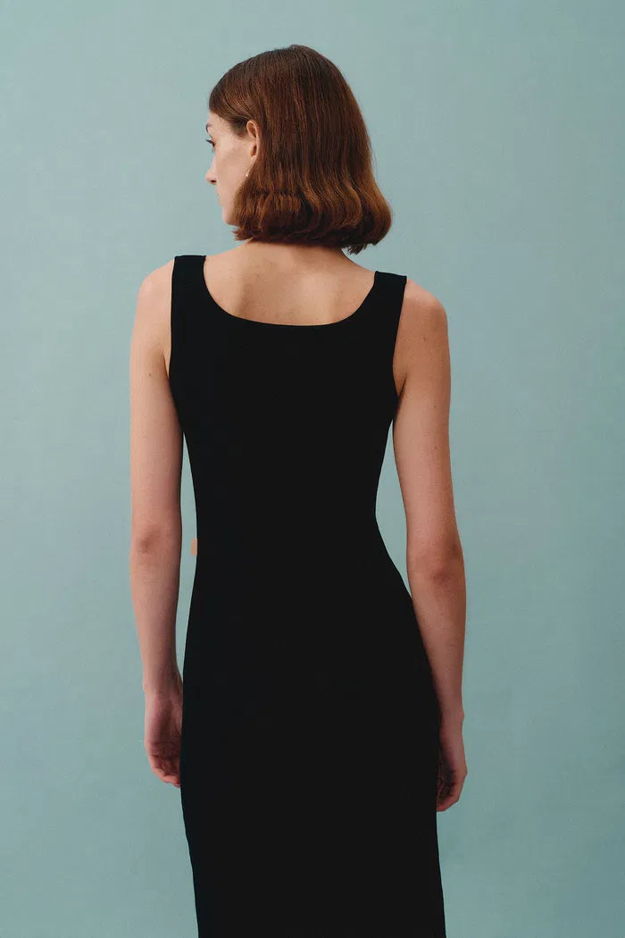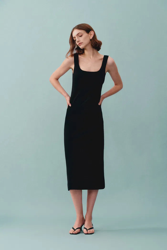 Hera Black Wide Sleeveless Strap Dress in Stretch Yarn Knit