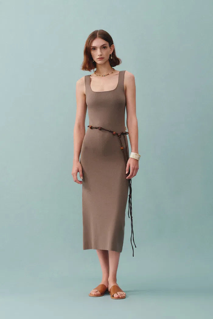 Hera Wide Sleeveless Strap Dress in Stretch Yarn Knit