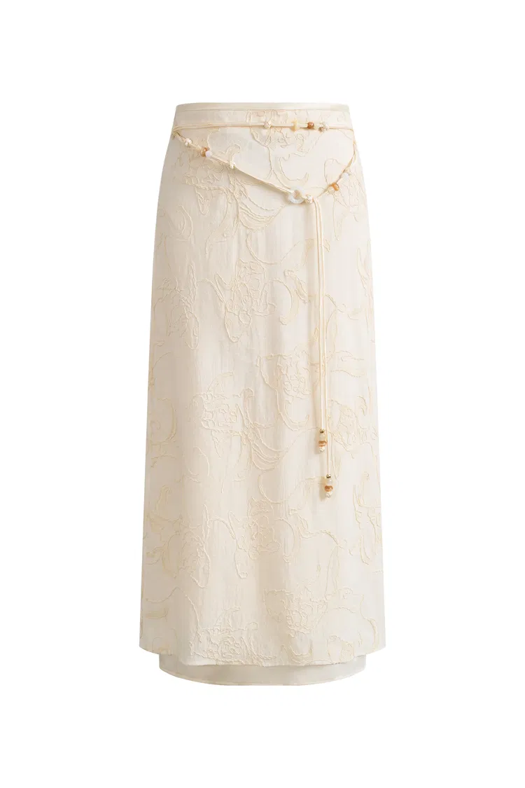 Korin Koi Embroidered Tie-Waist Skirt in Cotton and Wool