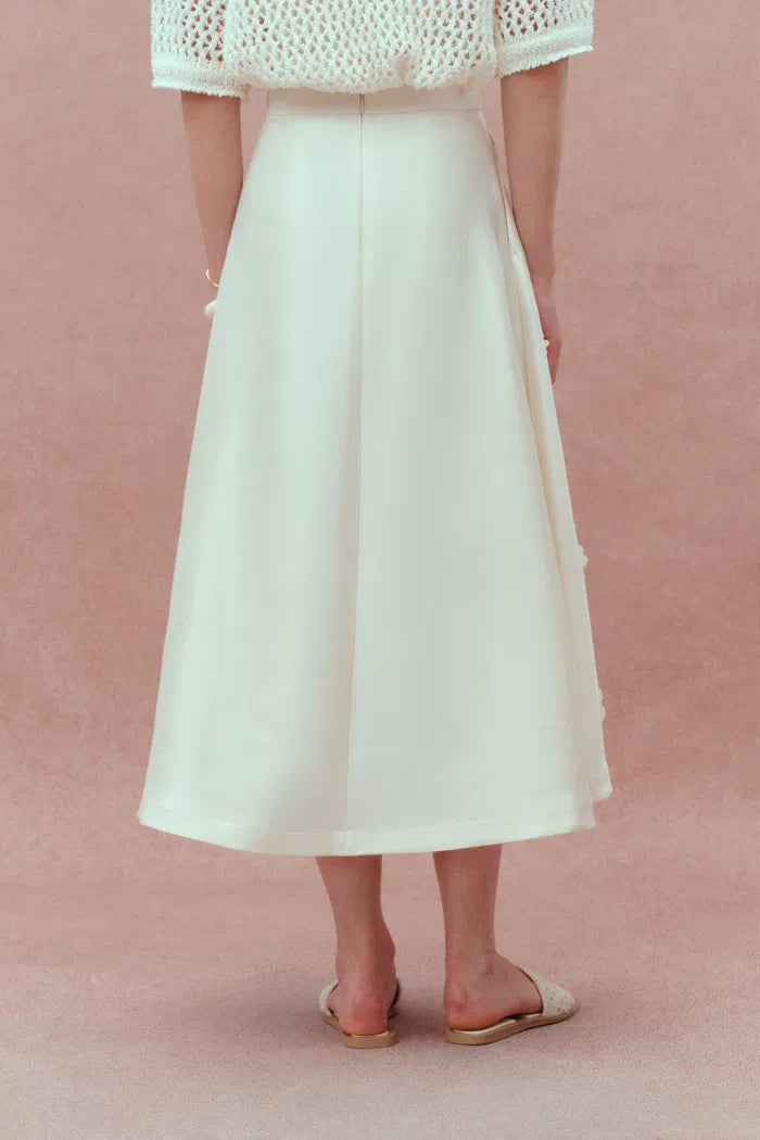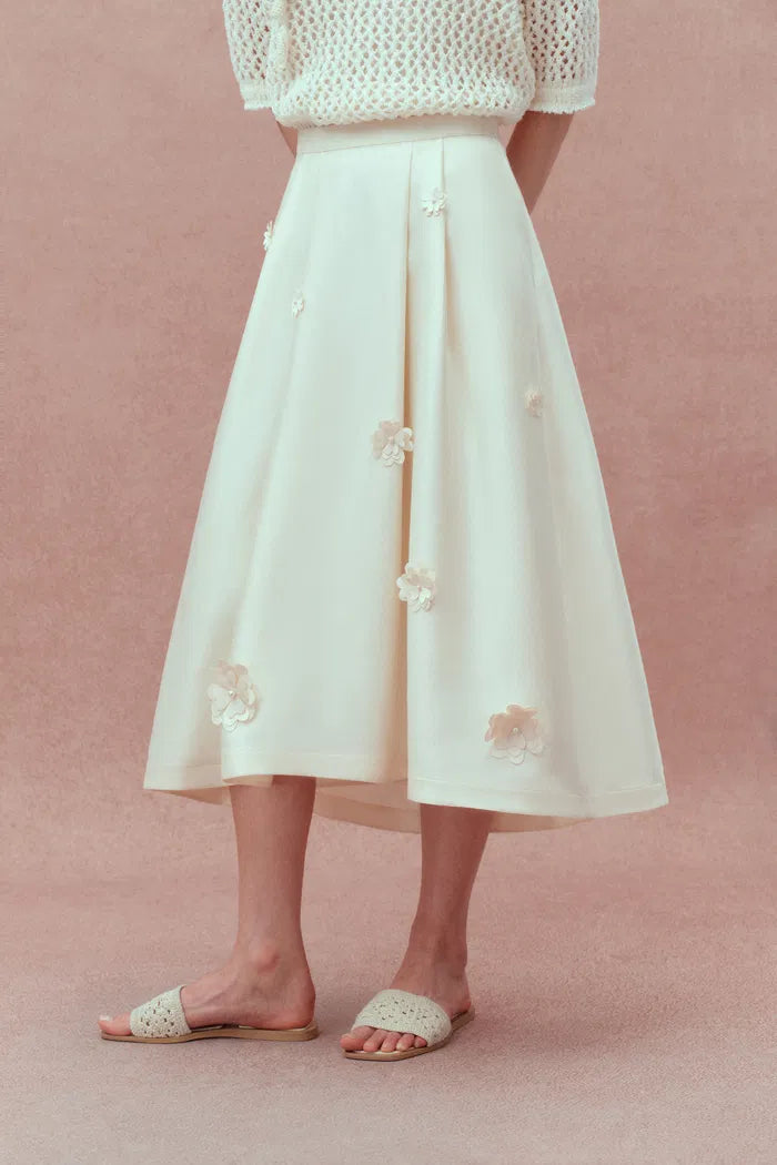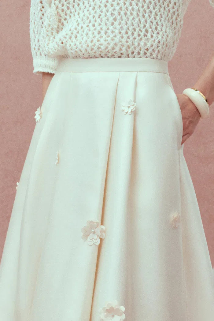 Lea Handcrafted 3D Floral Skirt in Silk-Wool Satin