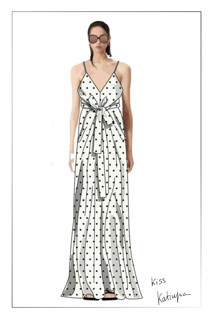 Luna Polka Dot Tie Dress in Mulberry Silk
