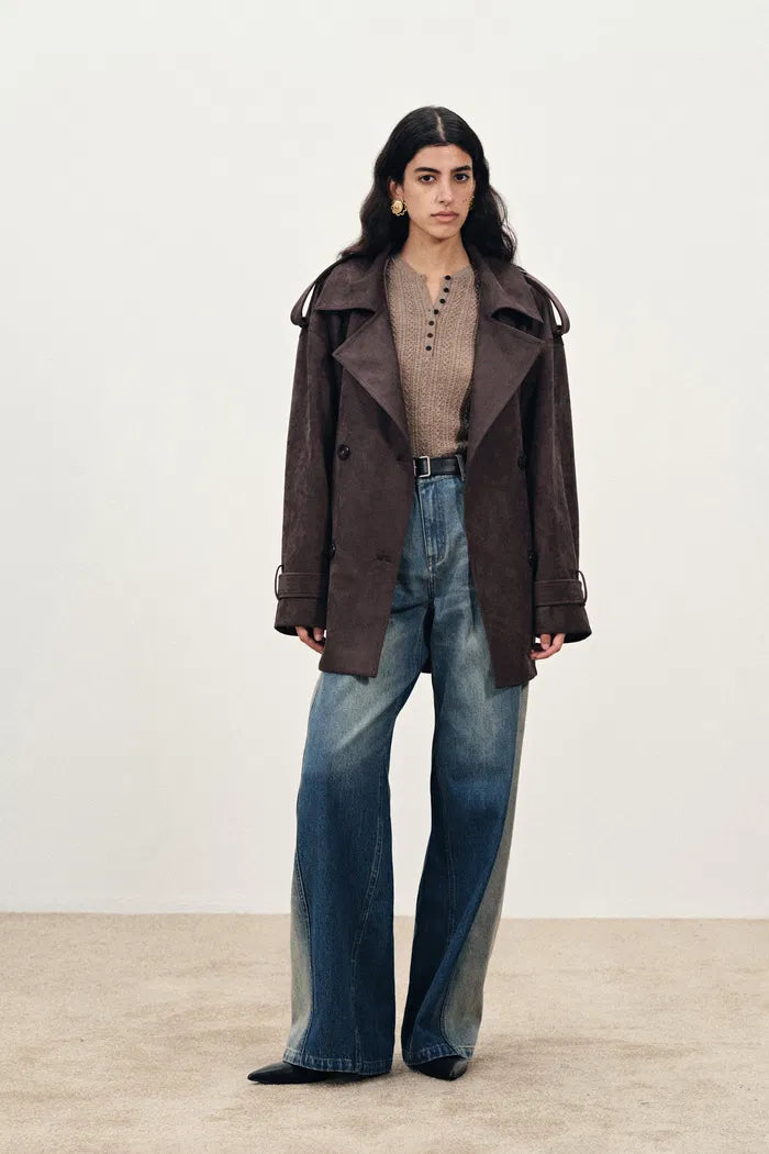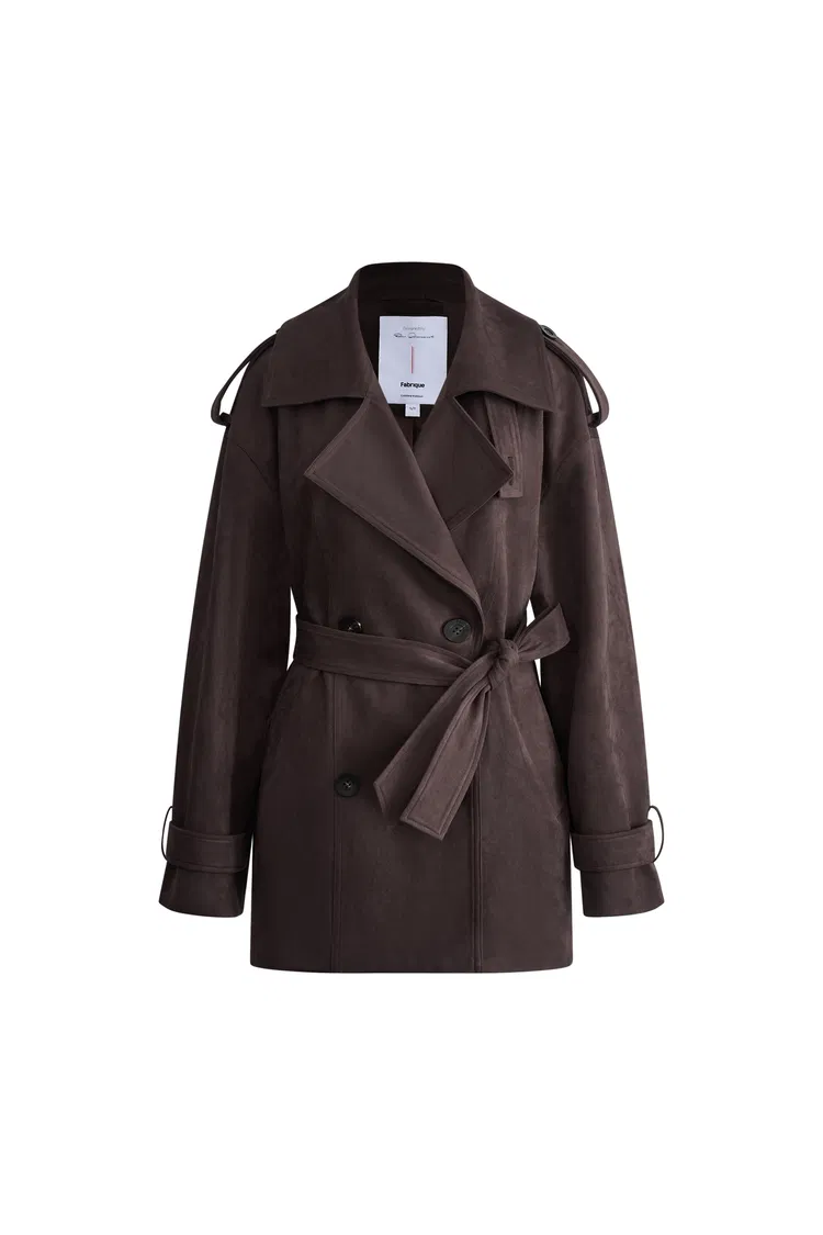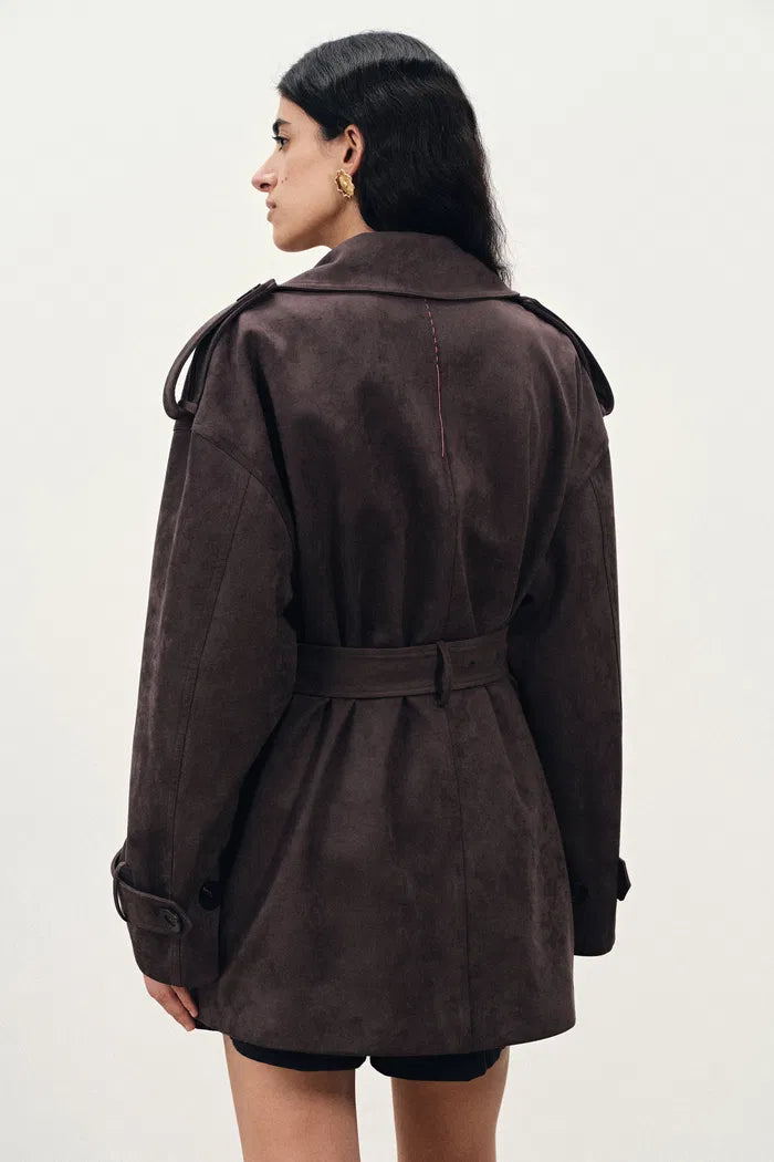 Nellie Large Lapel Short Trench Coat in Faux Suede