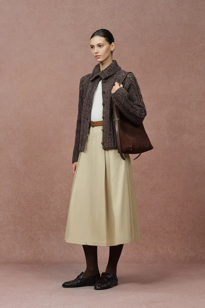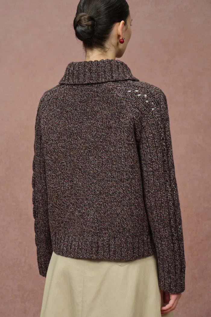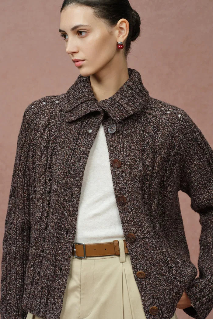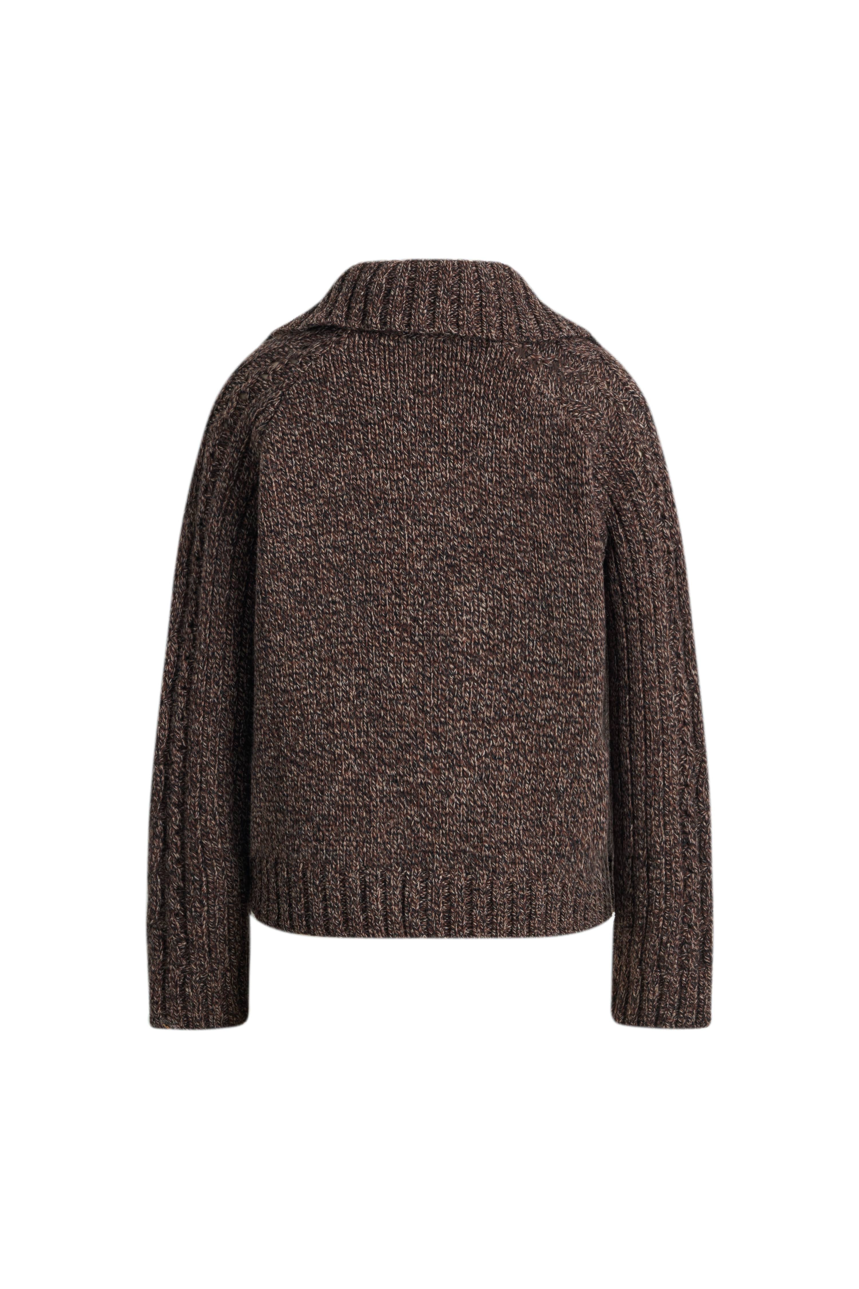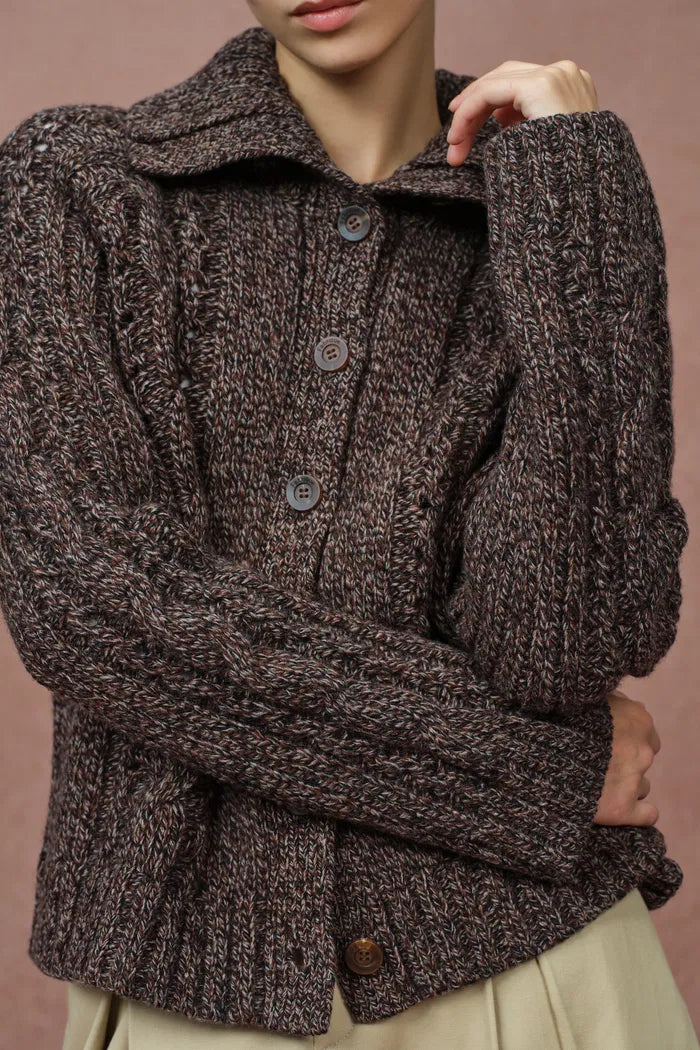 Avery Two Looks Collar Heathered Floral Cardigan Coat in Merino Wool