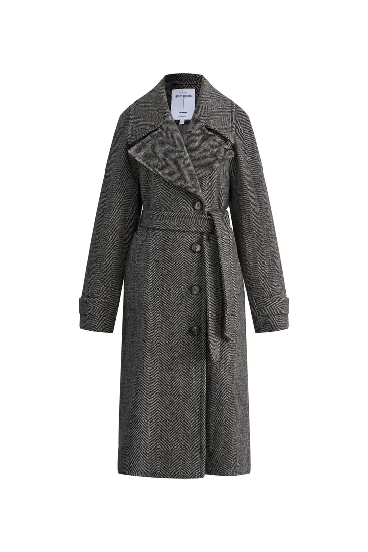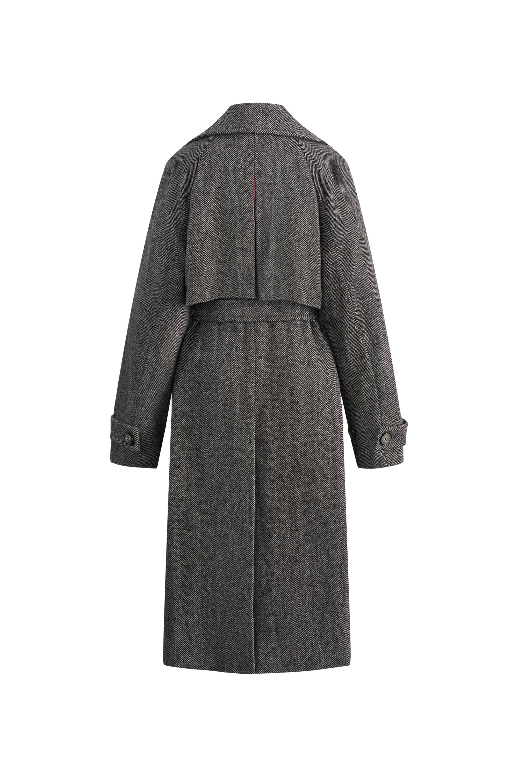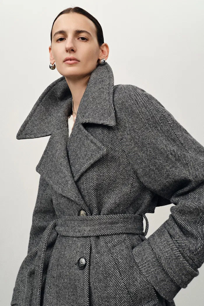 Delia Herringbone Trench Style Coat in Lightweight Merino Wool