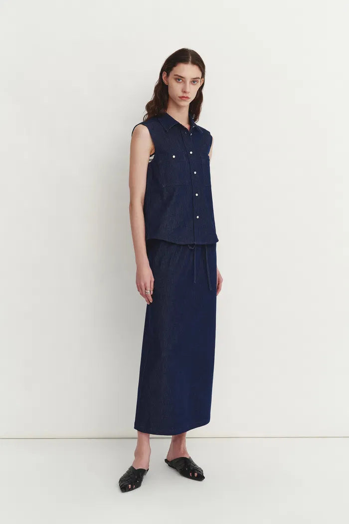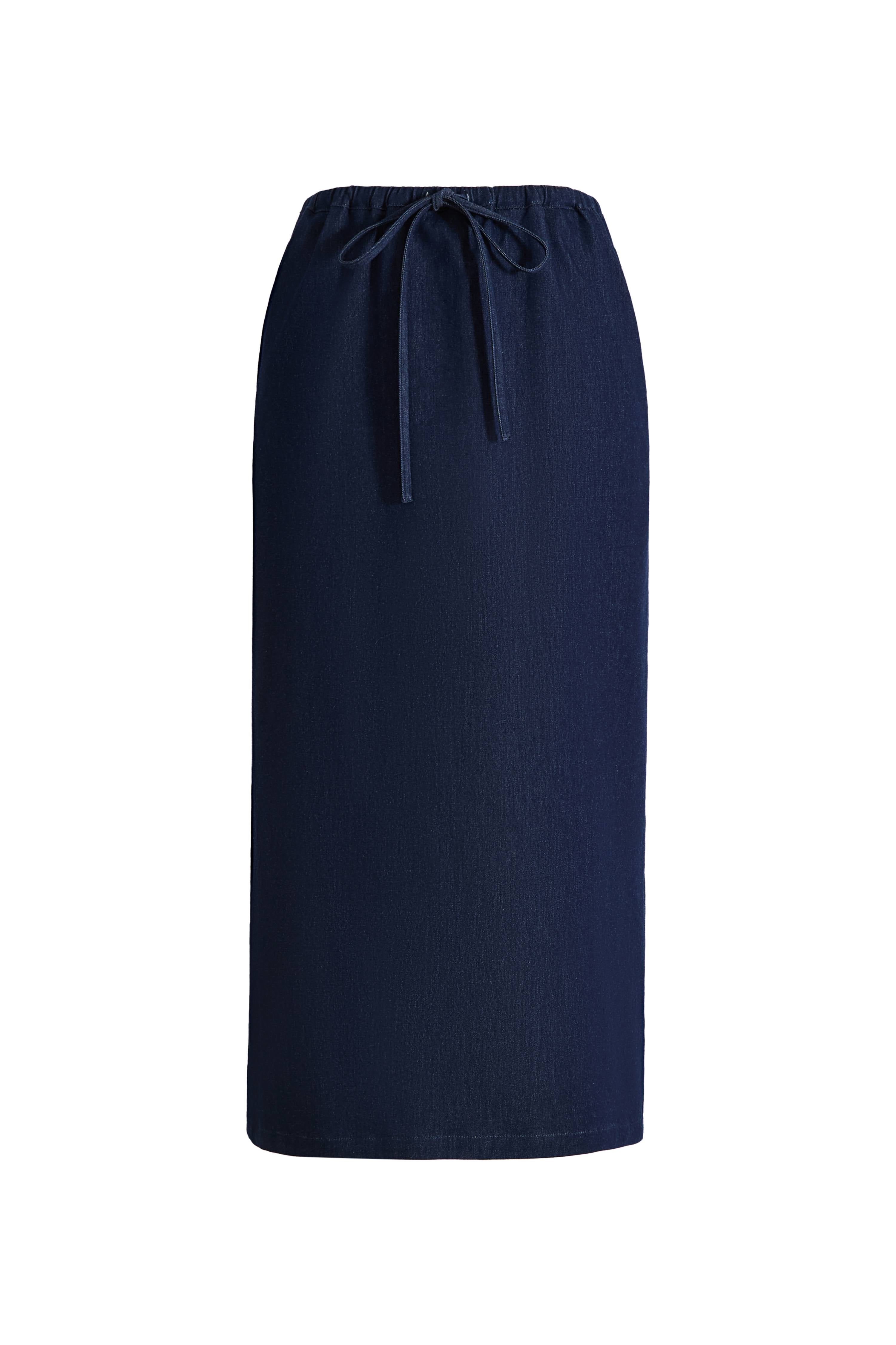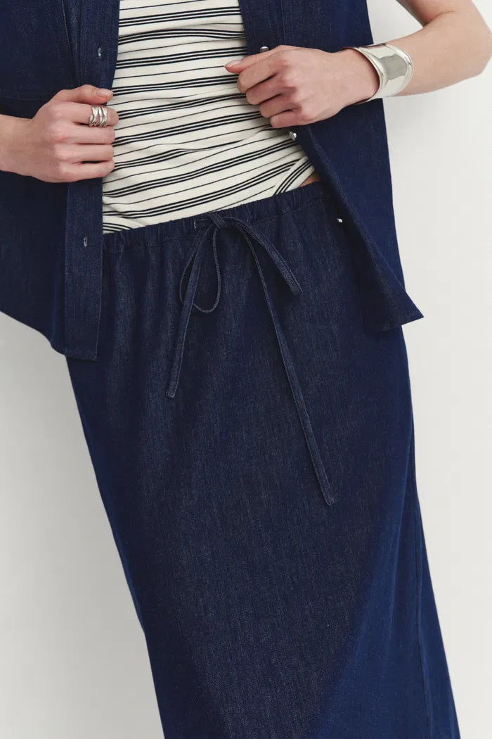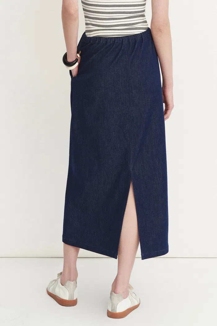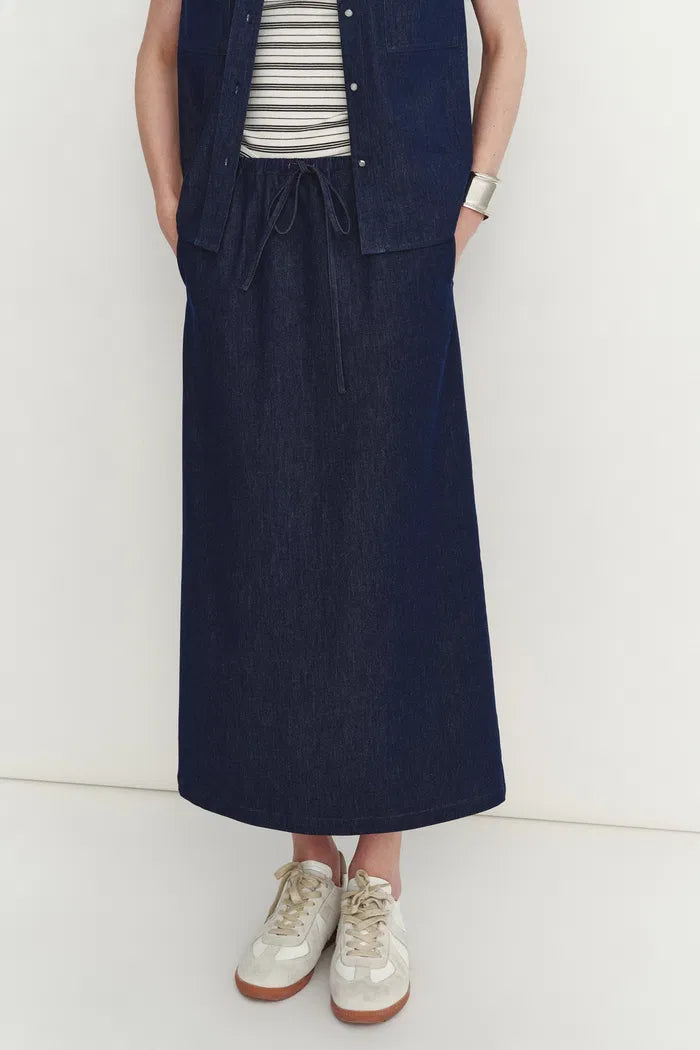 Francesca Midi Skirt in Linen-Cotton Denim