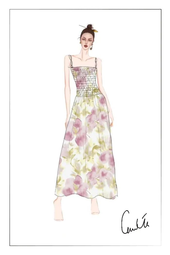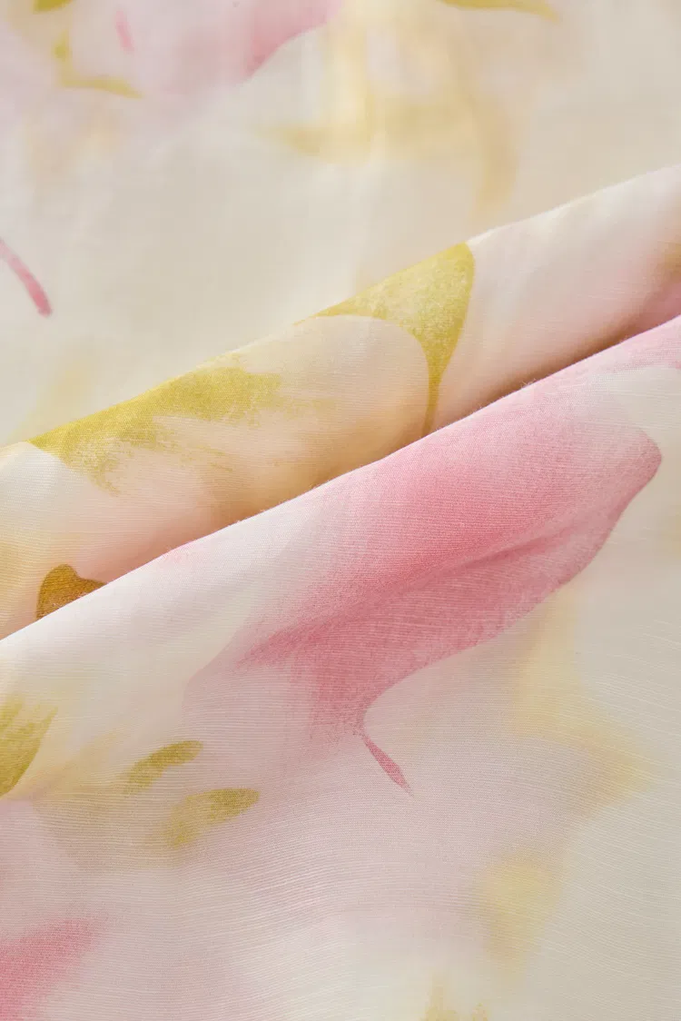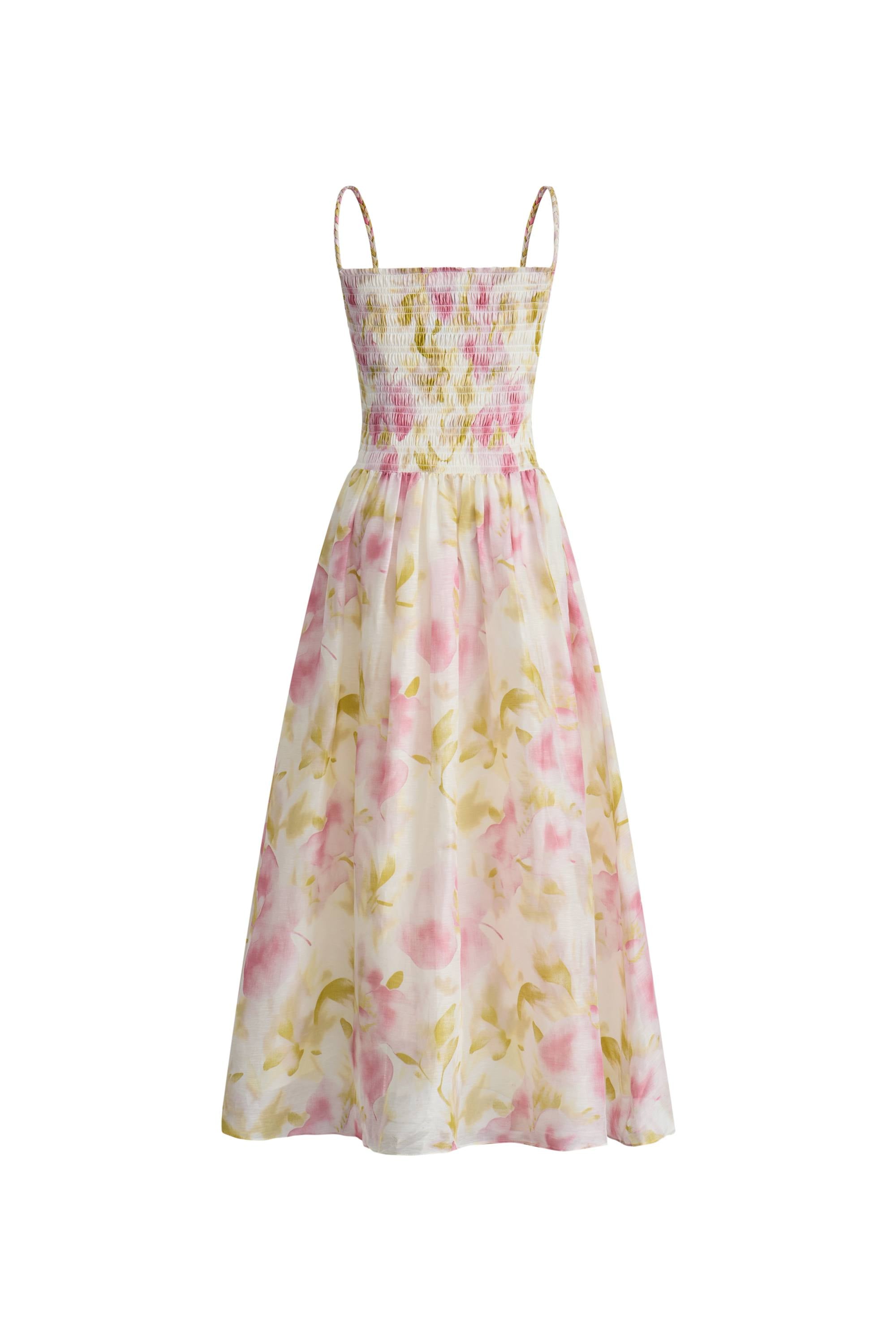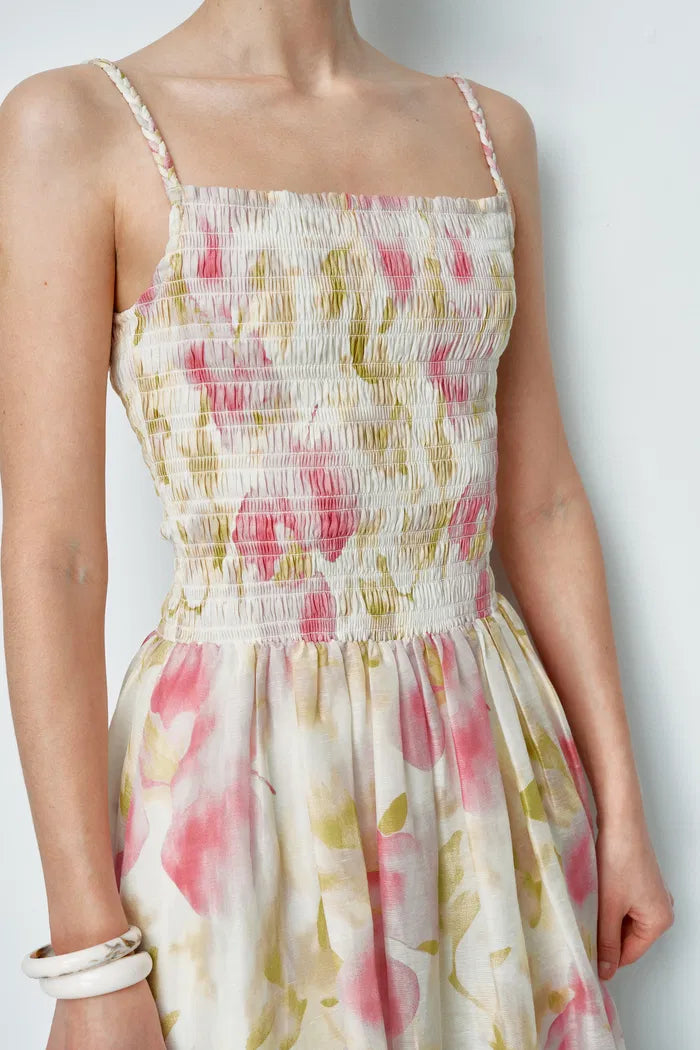 Kari Hand Woven Strap Shirred Dress in Silk-Linen Blend