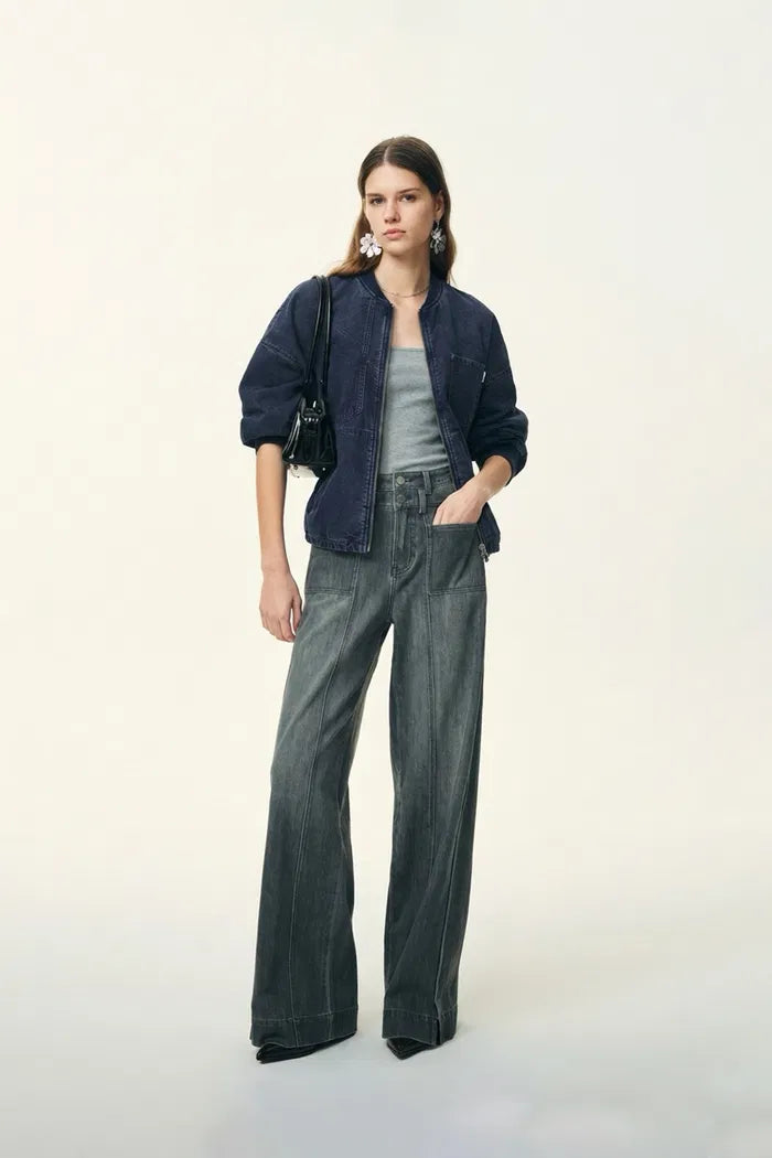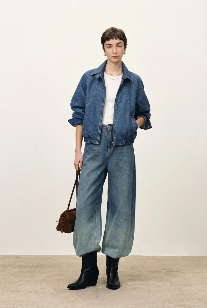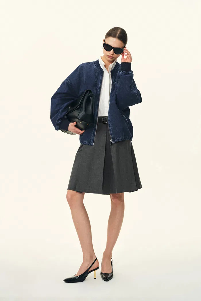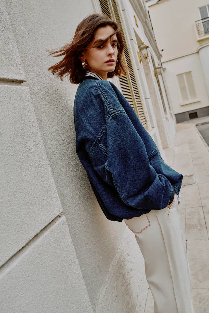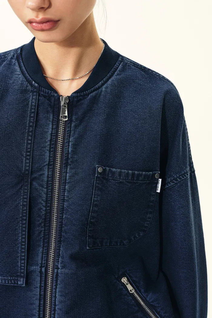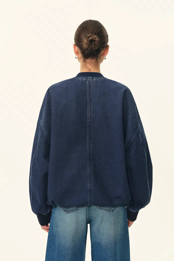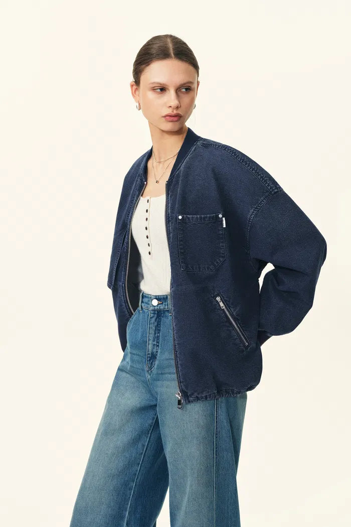 Quinn Denim Bomber Jacket in Lightweight Plain-Weave Denim
