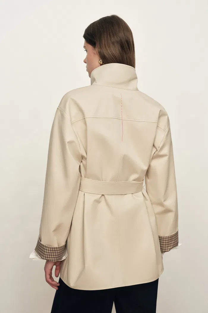 Sita Check Panel Belted Cropped Trench Coat In Trench Cotton