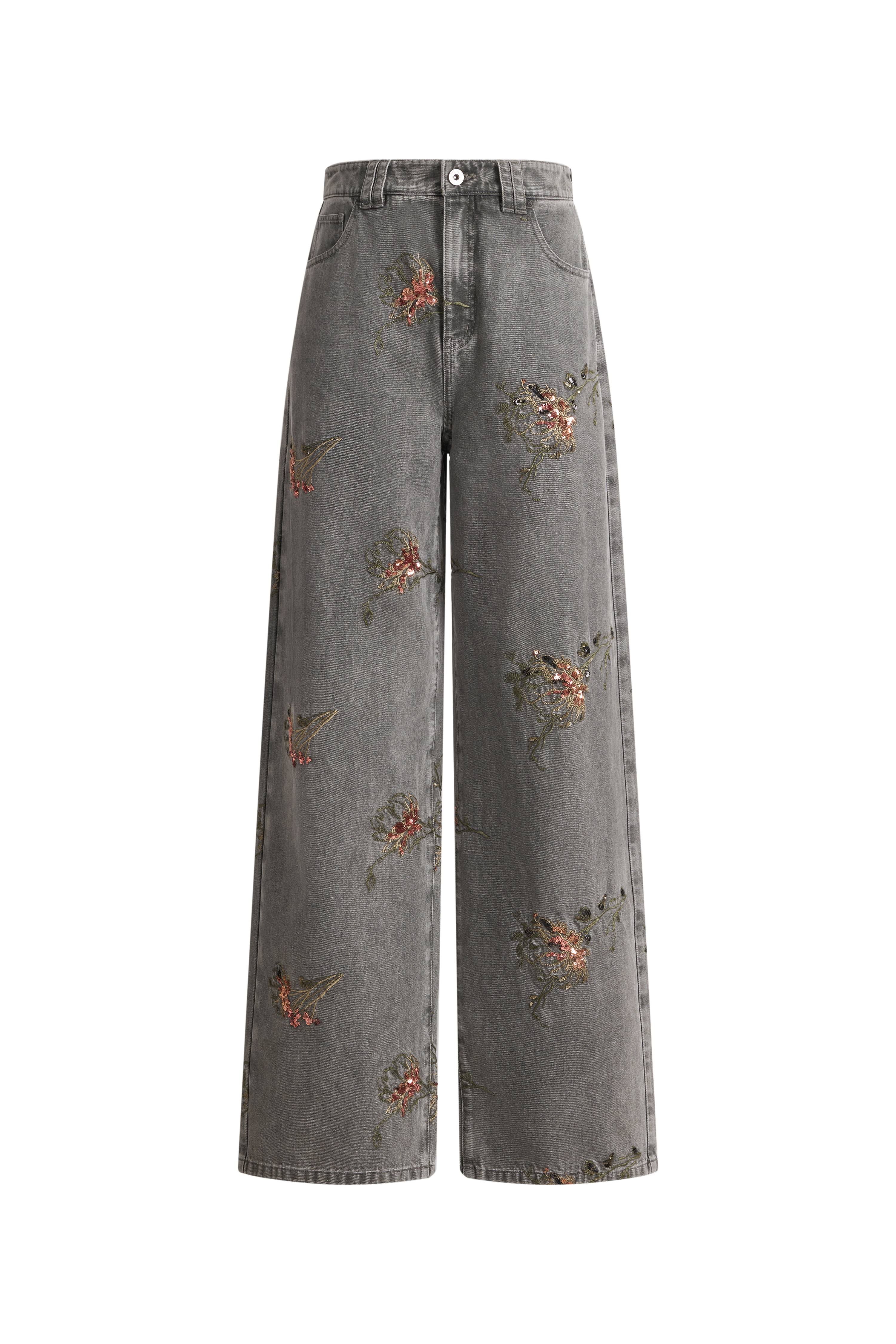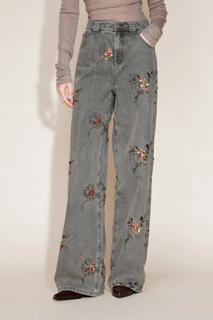 The soft beadwork on this denim brings a romantic lift to everyday dressing. The green-gold palette feels fresh for early spring, making these straight-leg jeans an easy switch from your usual basics.