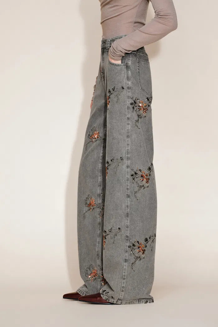BEADED COTTON DENIM