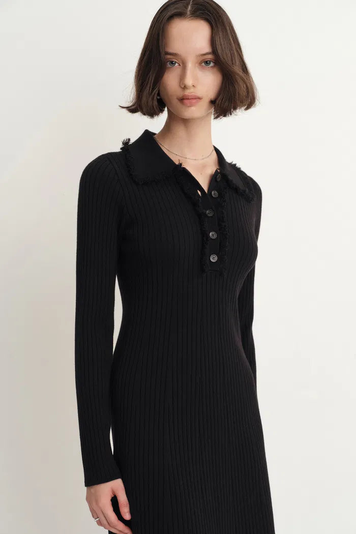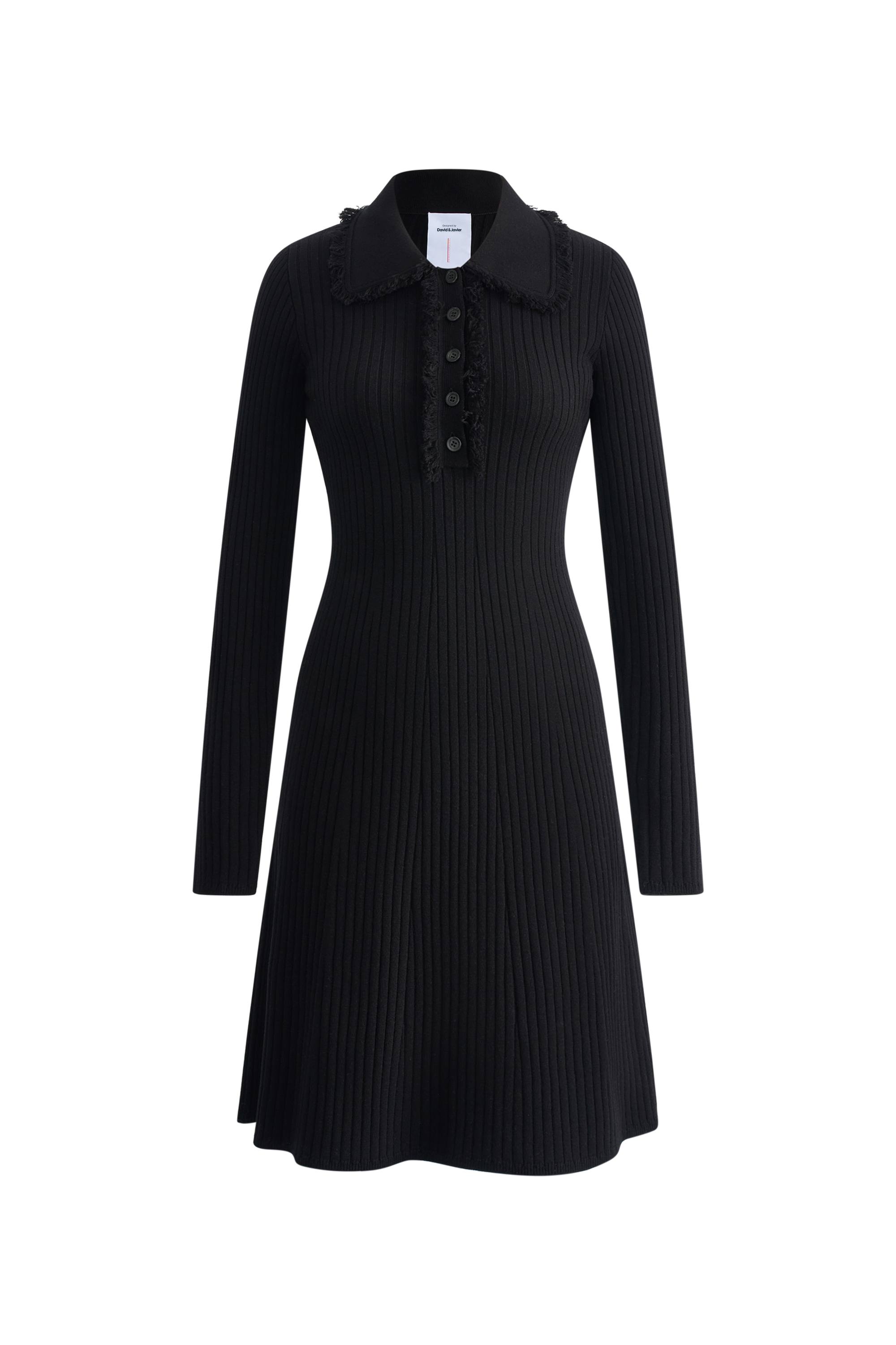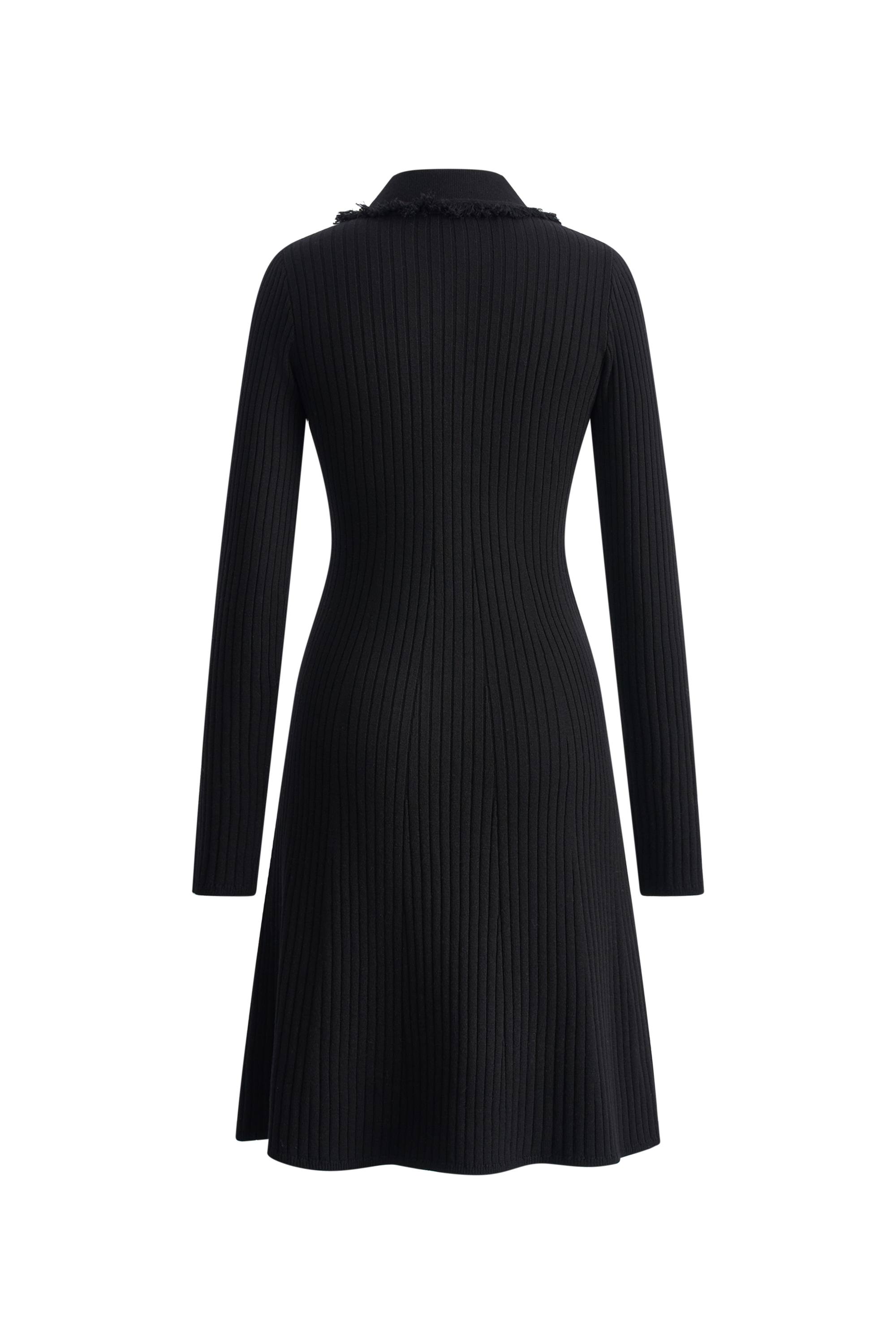 Anja Fringe Collar Long Sleeve Short Dress in Merino Wool Knit