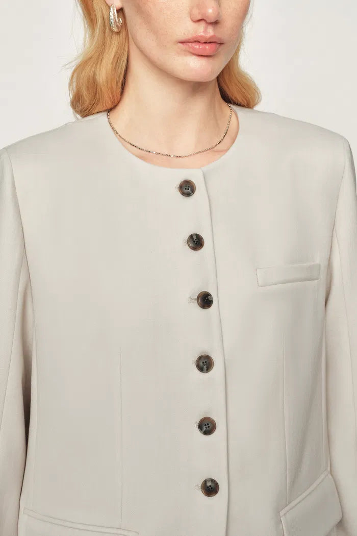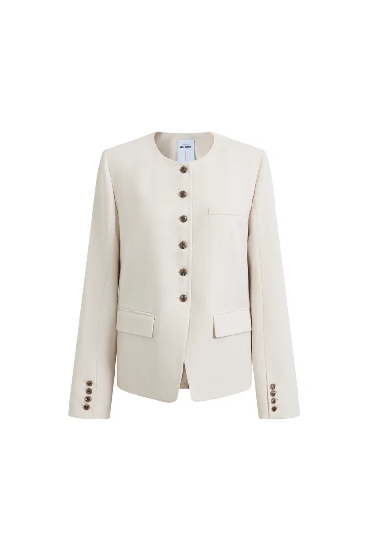 Celia Round Neck Suit Blazer in Fine Worsted Wool