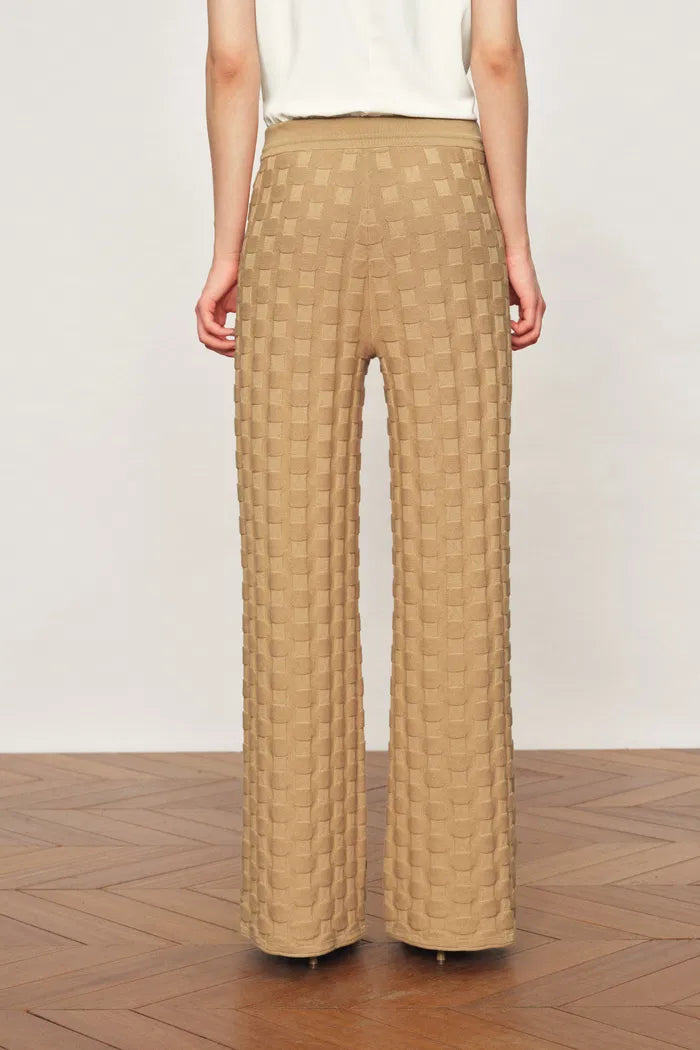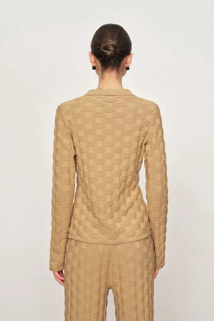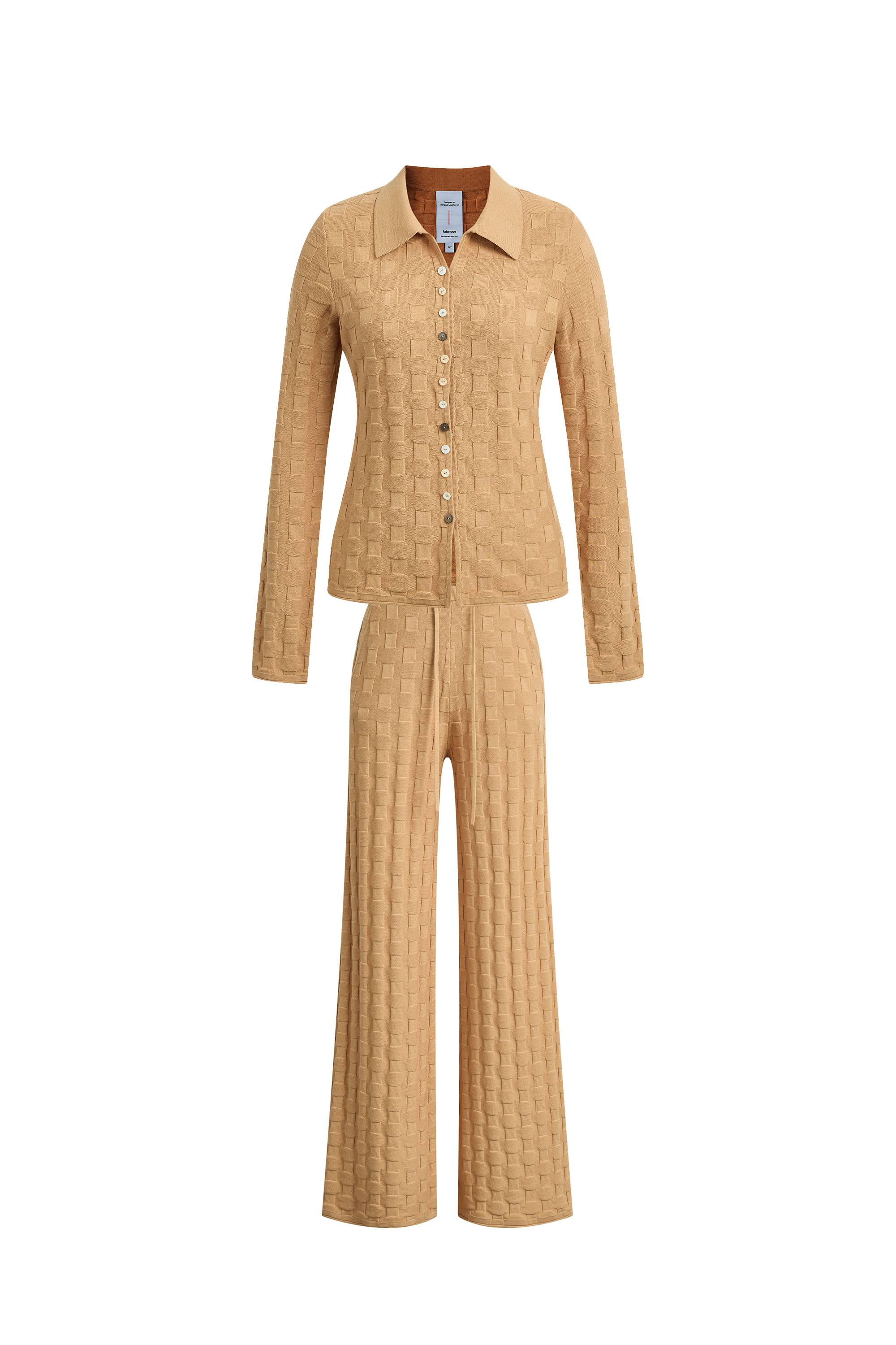 Elowen Plaid Textured Knit Cardigan and Pants in Cotton Blend Knit