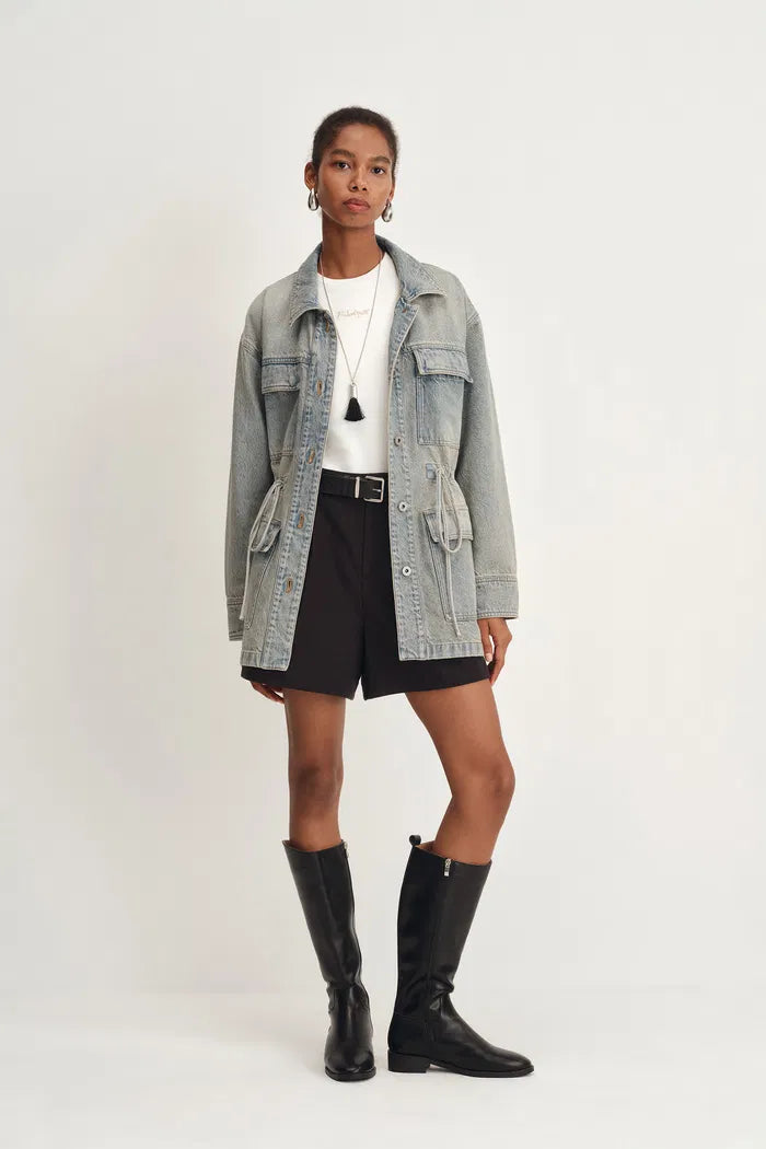 Esme Safari Style Drawstring Jacket in Cotton Denim