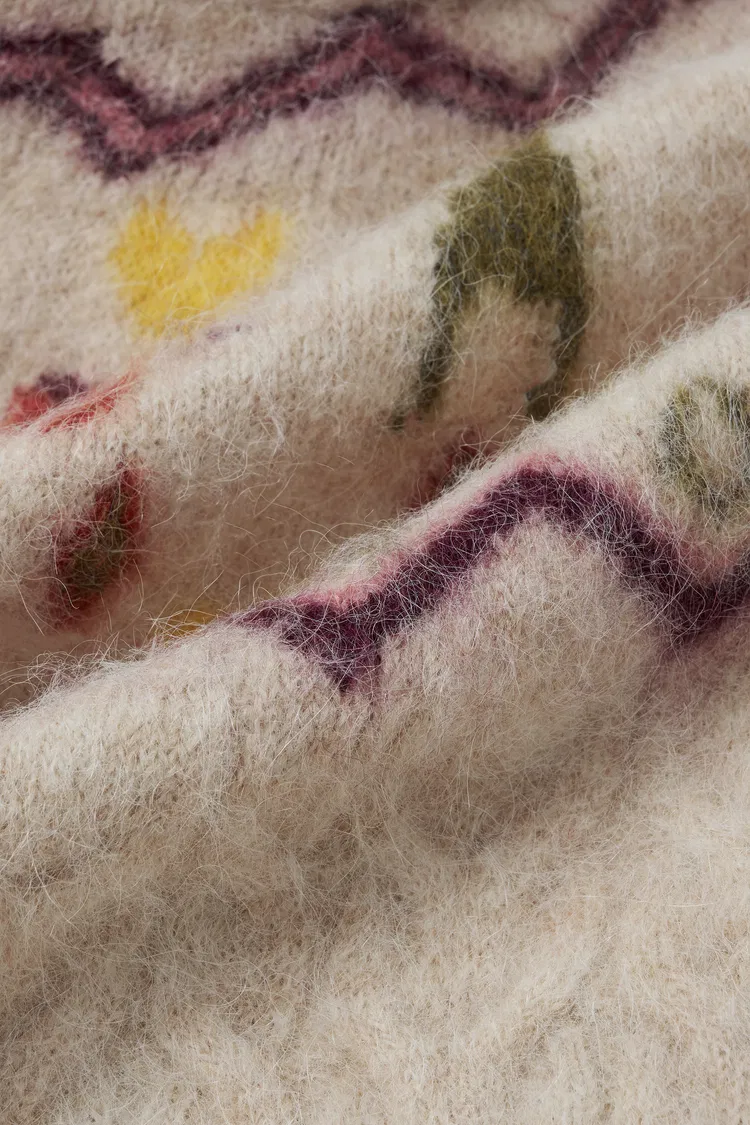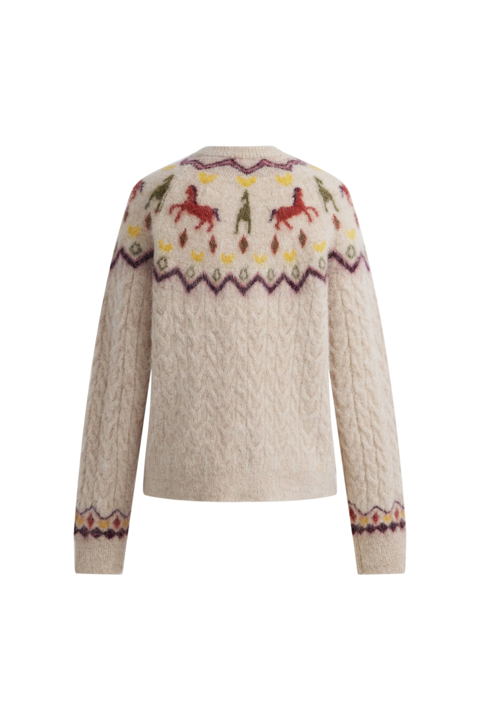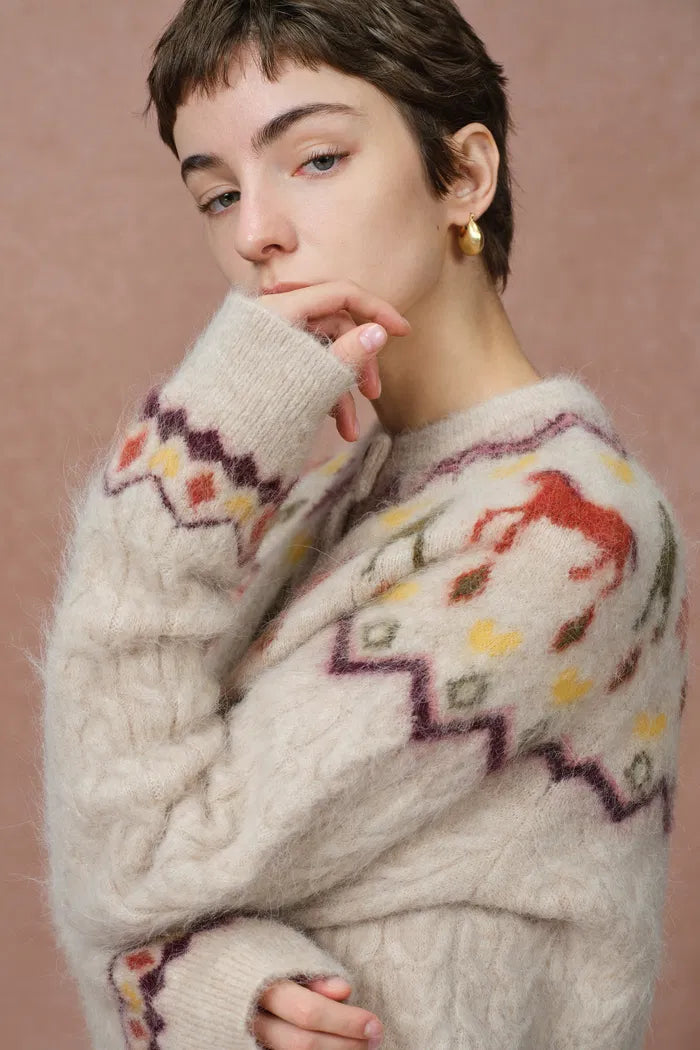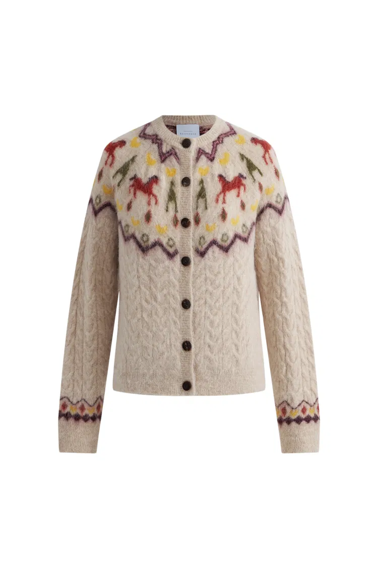 Genevieve Hidatsa Tribal Artwork Inspired Pony Fair Isle Cardigan in Alpaca Multi-Yarn