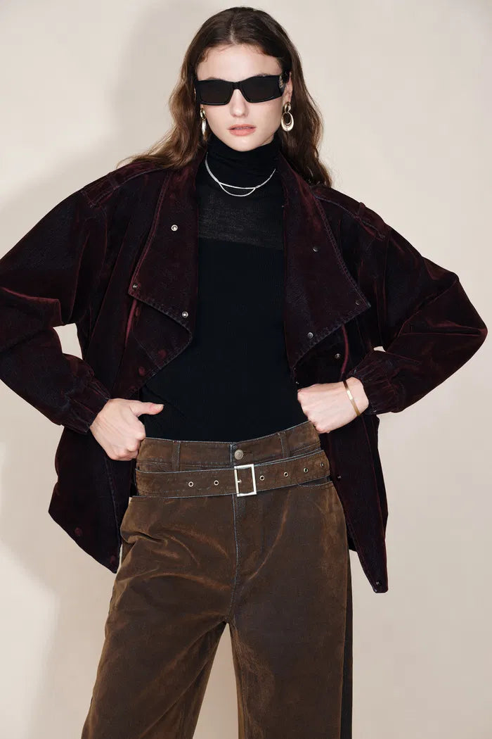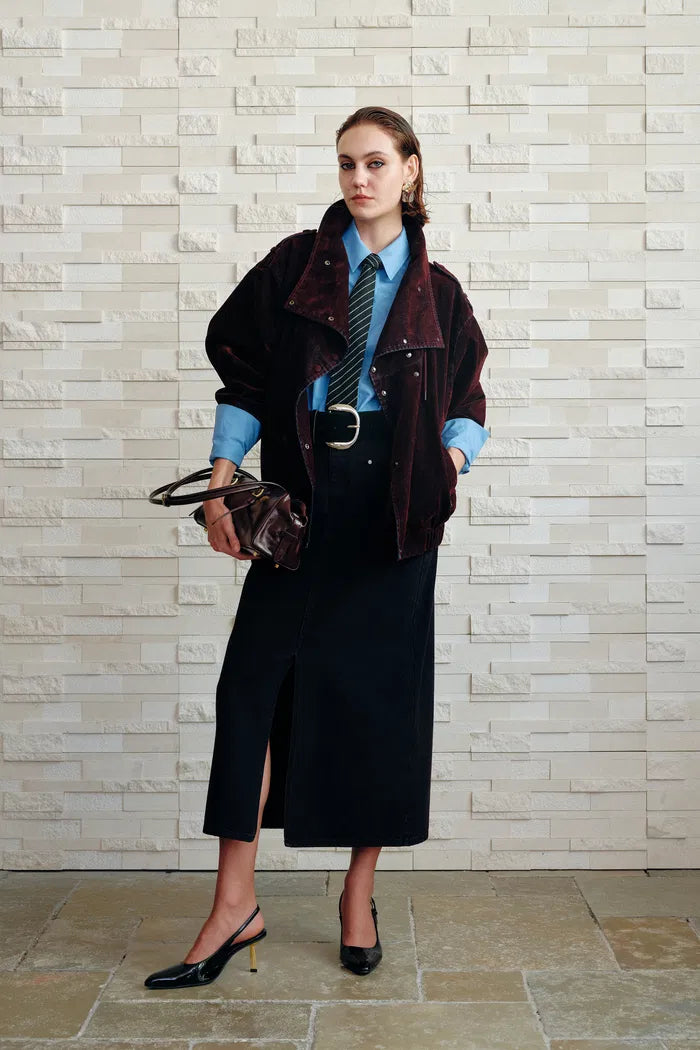 Hilda Reversible Collar Flocked Denim Jacket in Flocked Denim
