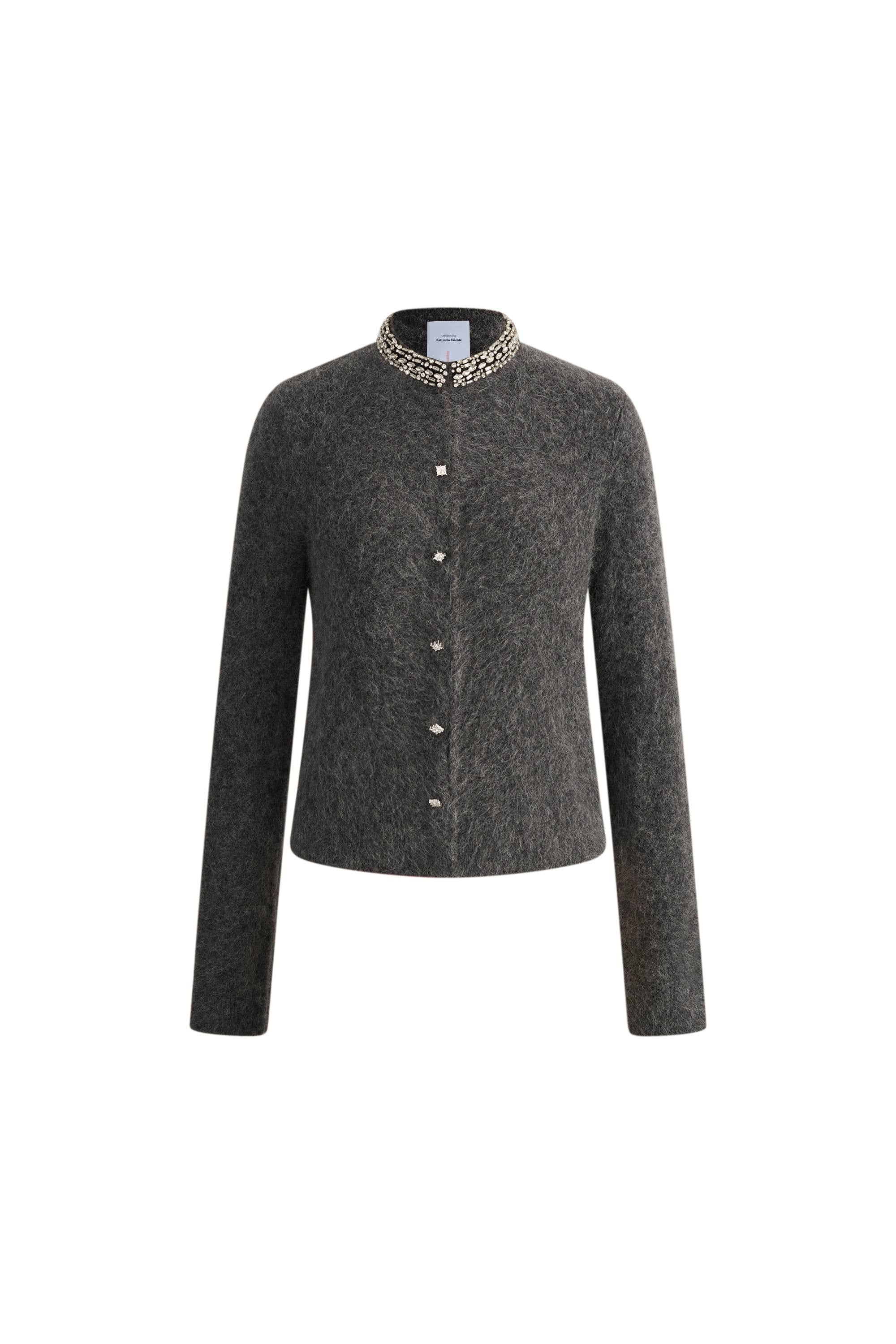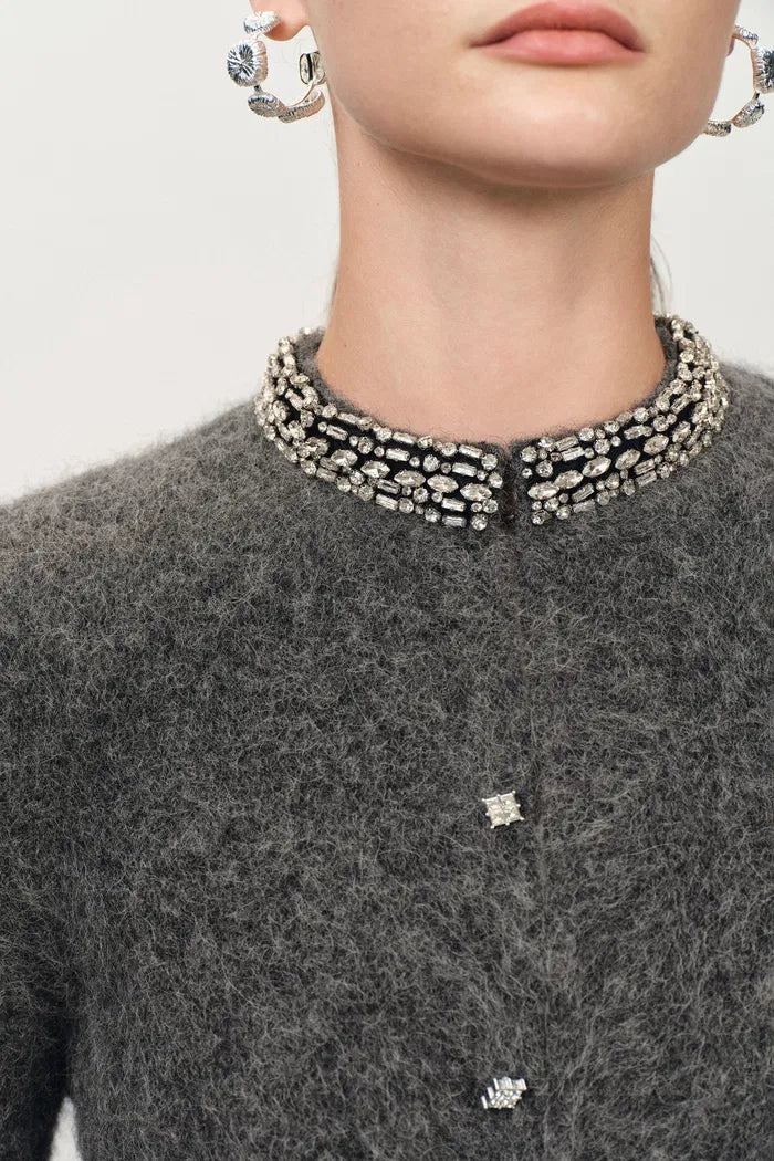 Jinelle Embellished Collar Cardigan in Alpaca Blend Knit