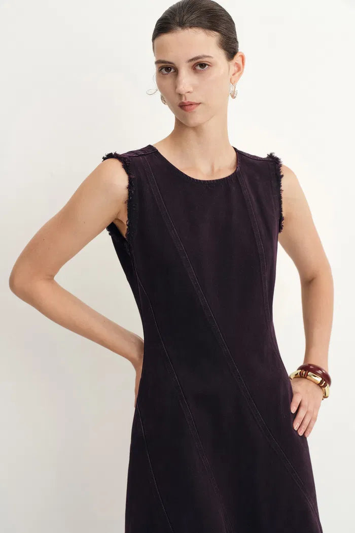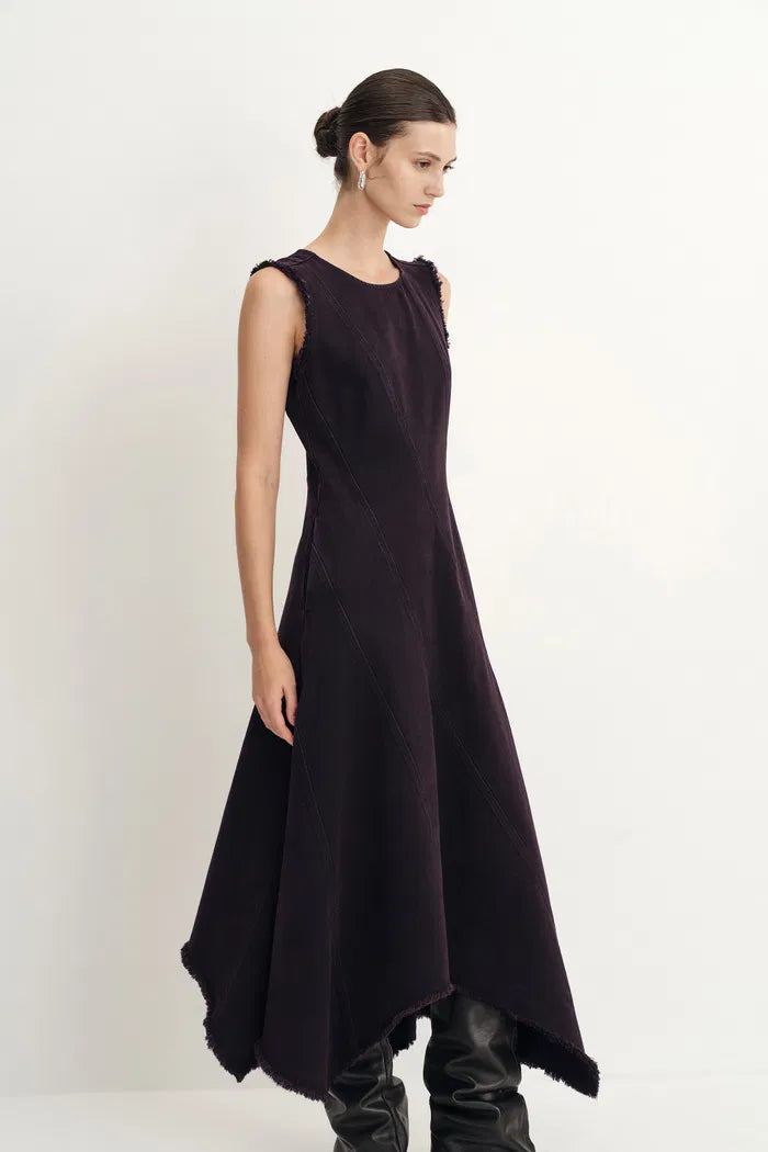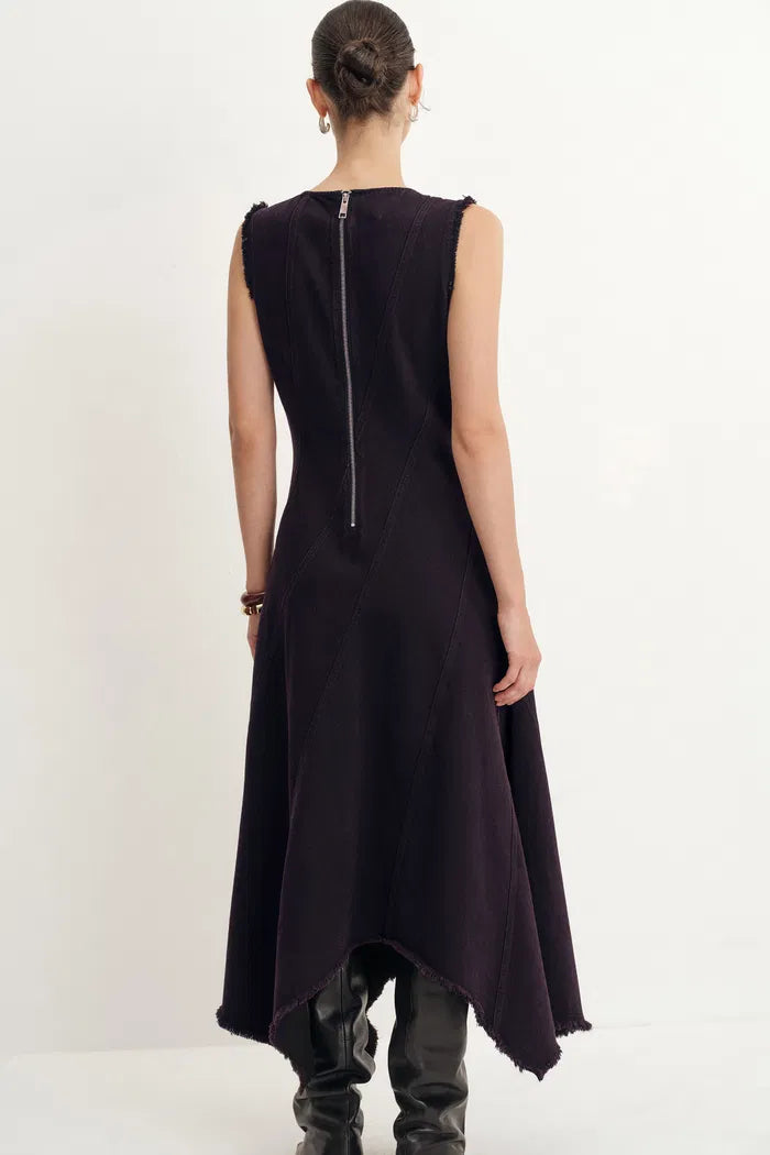 Mooneye Irregular Hem Sleeveless Dress in Cotton Denim