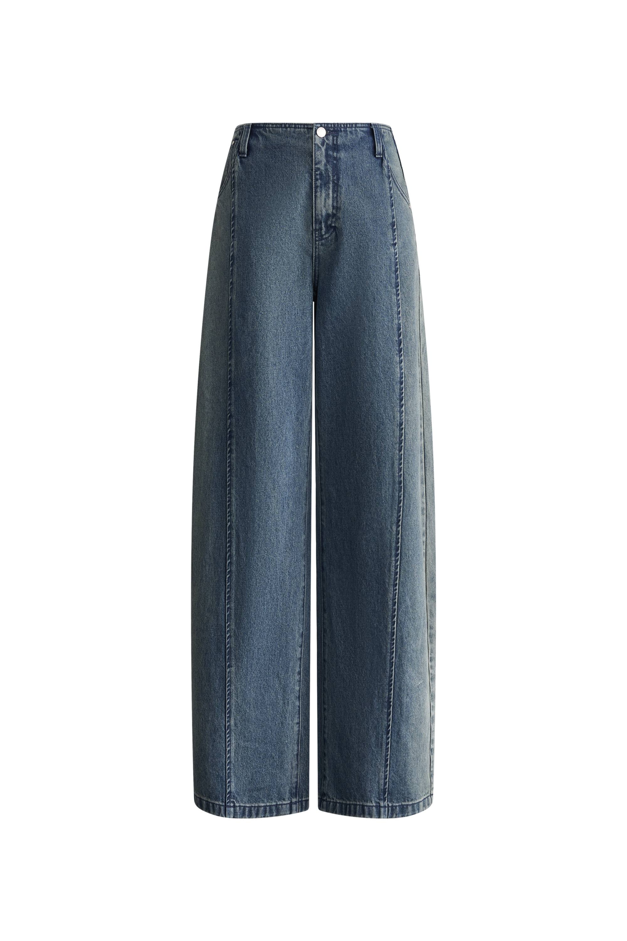 Paz Yellowish Baggy Washed Jeans in Cotton Denim