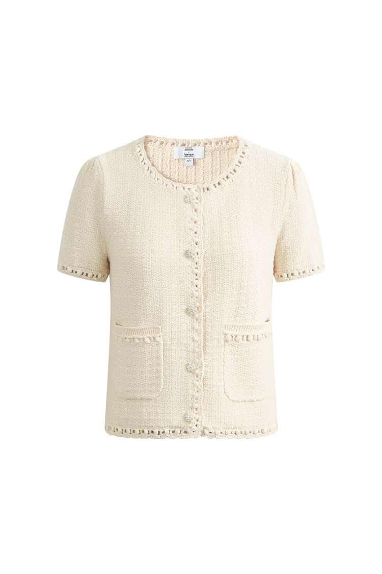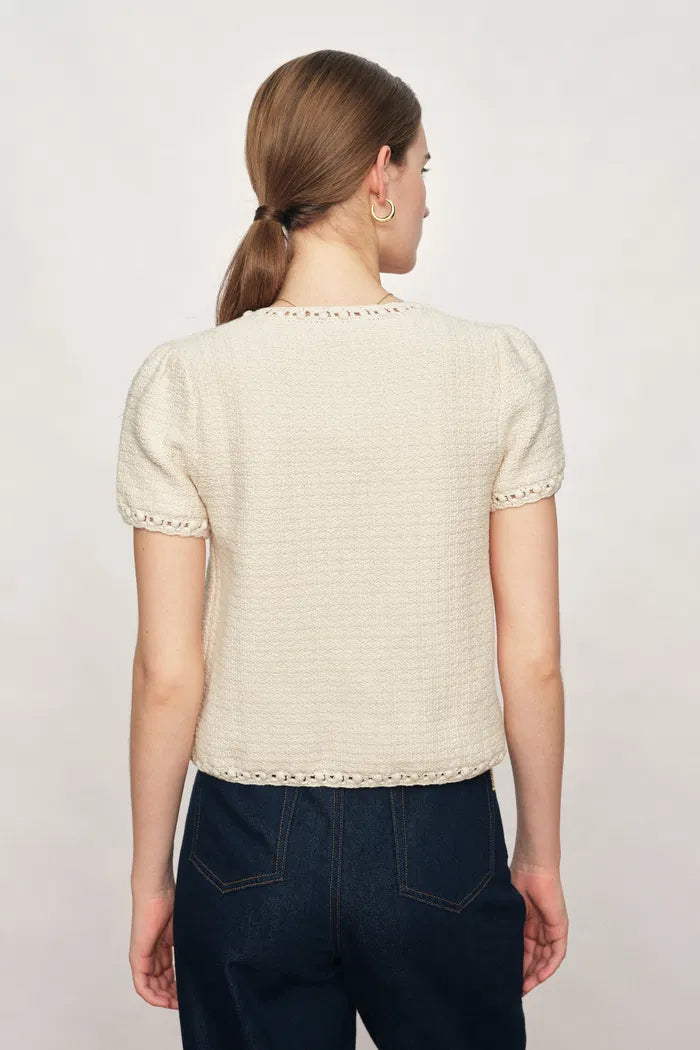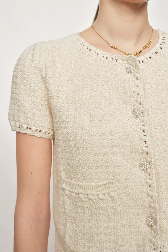 Shay Short Sleeve Crop Cardigan in Textured Cotton Knit