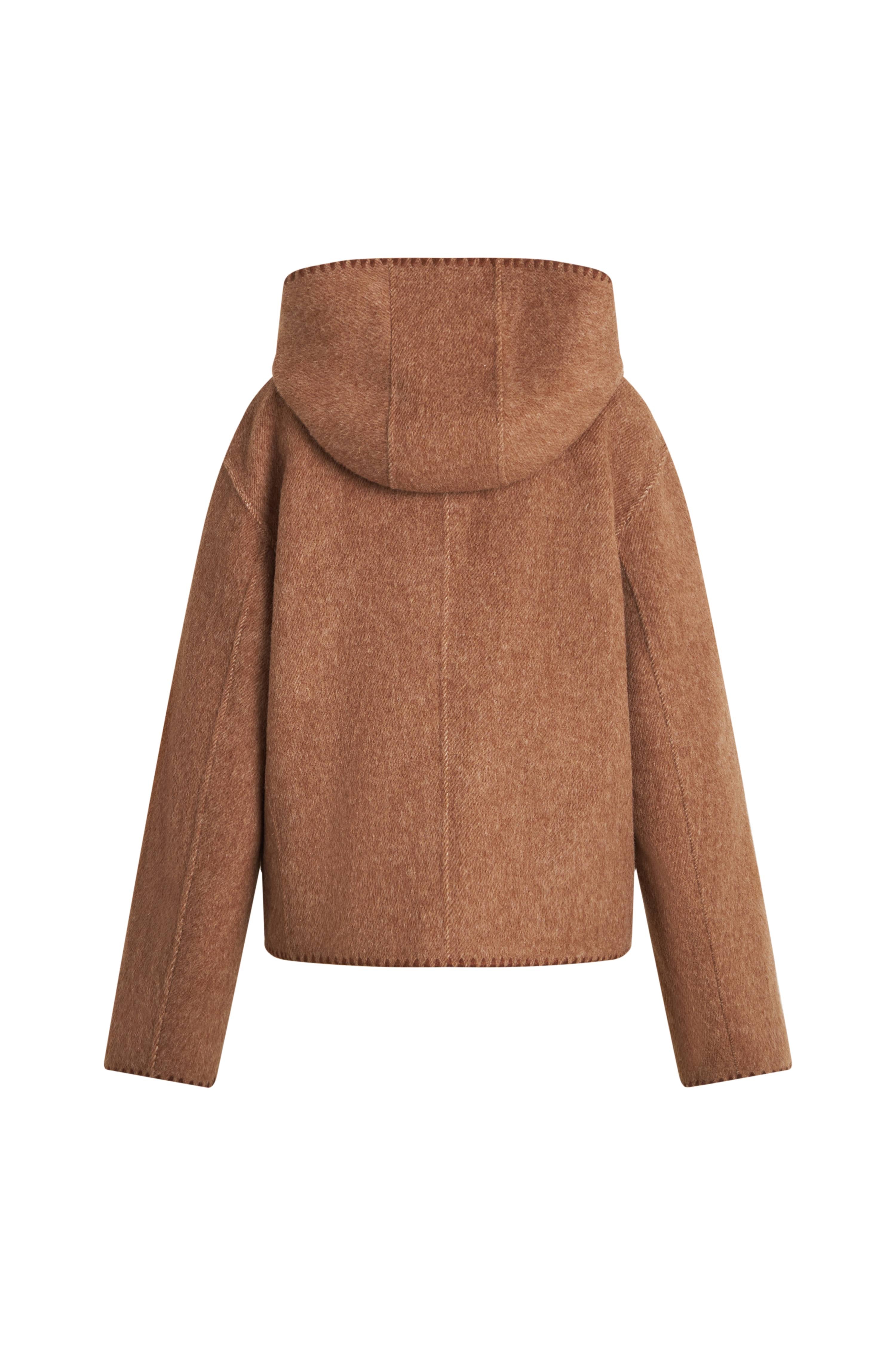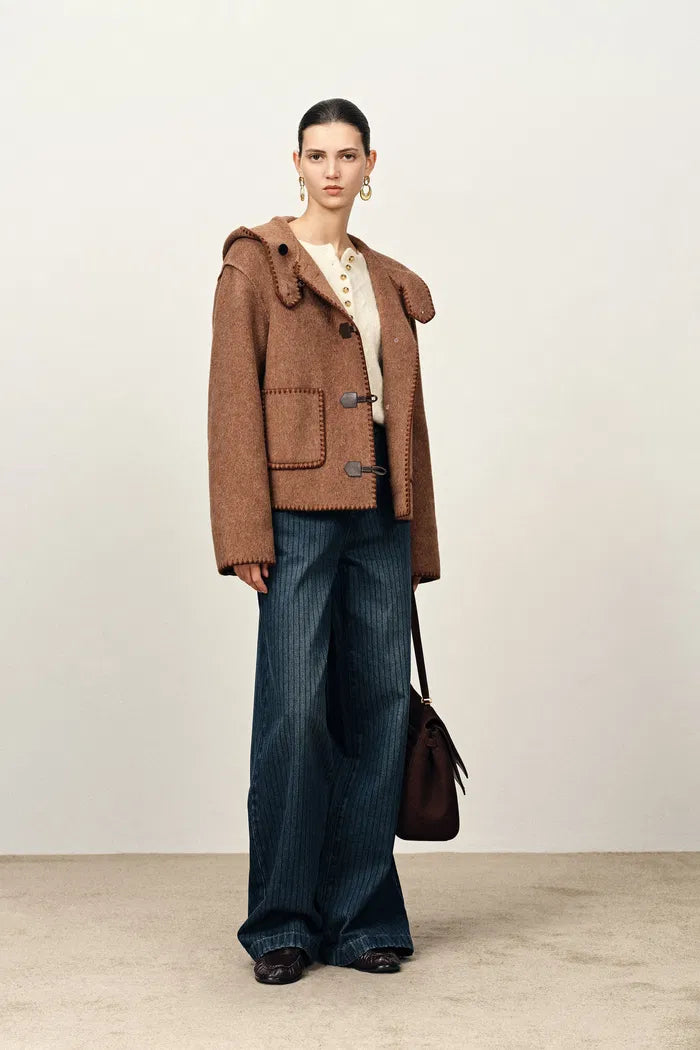 Carina Embroidered Hooded Short Coat in Merino Alpaca Twill