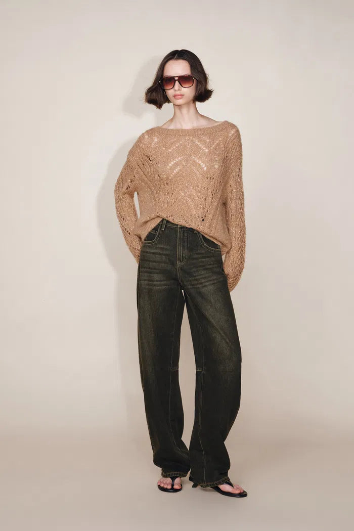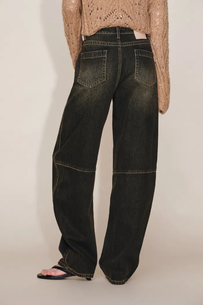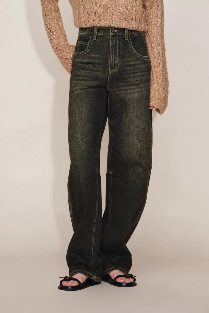 Cotton denim gets the water-wash treatment for that broken-in comfort from day one. The earthy brown tones are designed for fall mood layering, working seamlessly with boots and cozy knits.