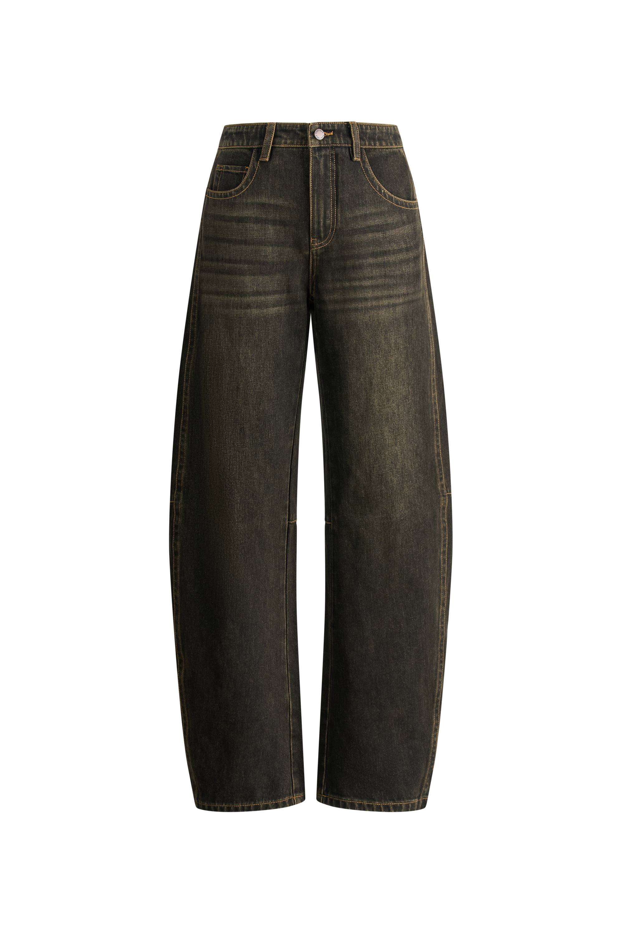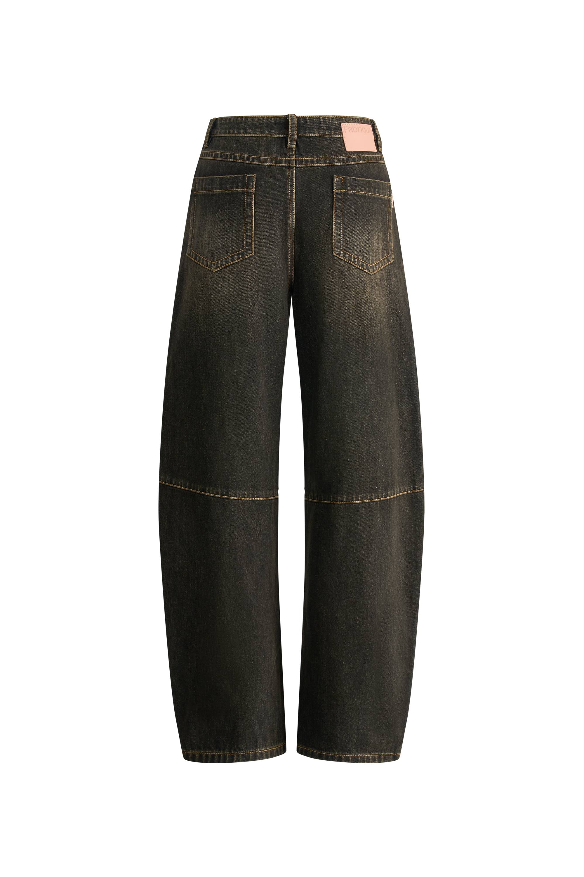 Courtney Contrasting Seams Washed Machete Jeans in Cotton Denim