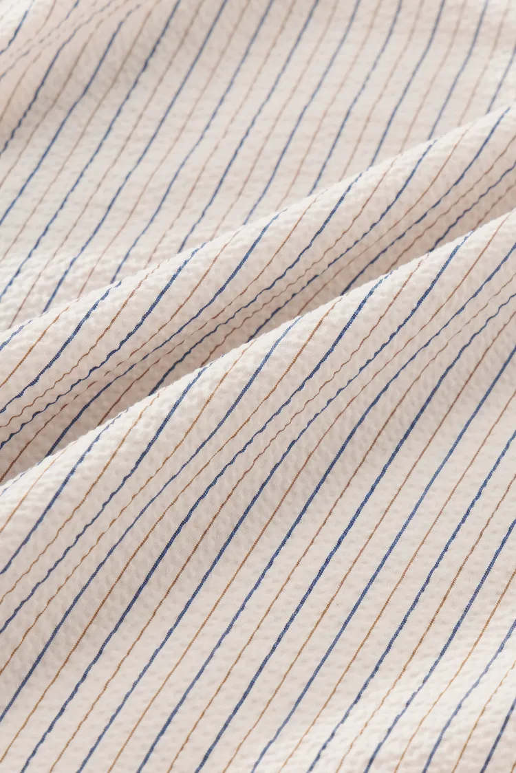 Daisy Denim Collar Striped Shirt in Cotton Seersucker