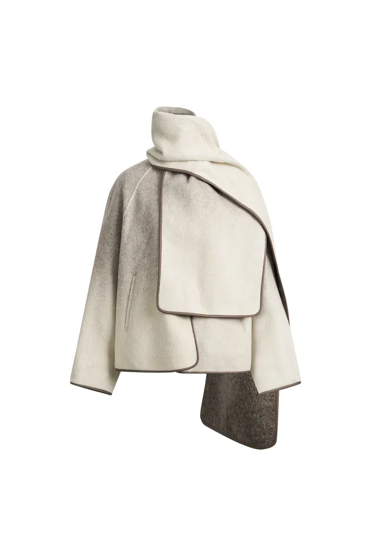 Dara Gradient Scarf Style Wool Peacoat in Wool-Silk-Rabbit Hair Blend