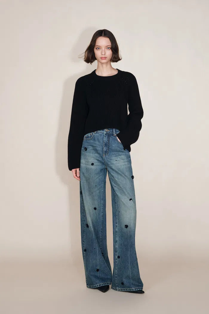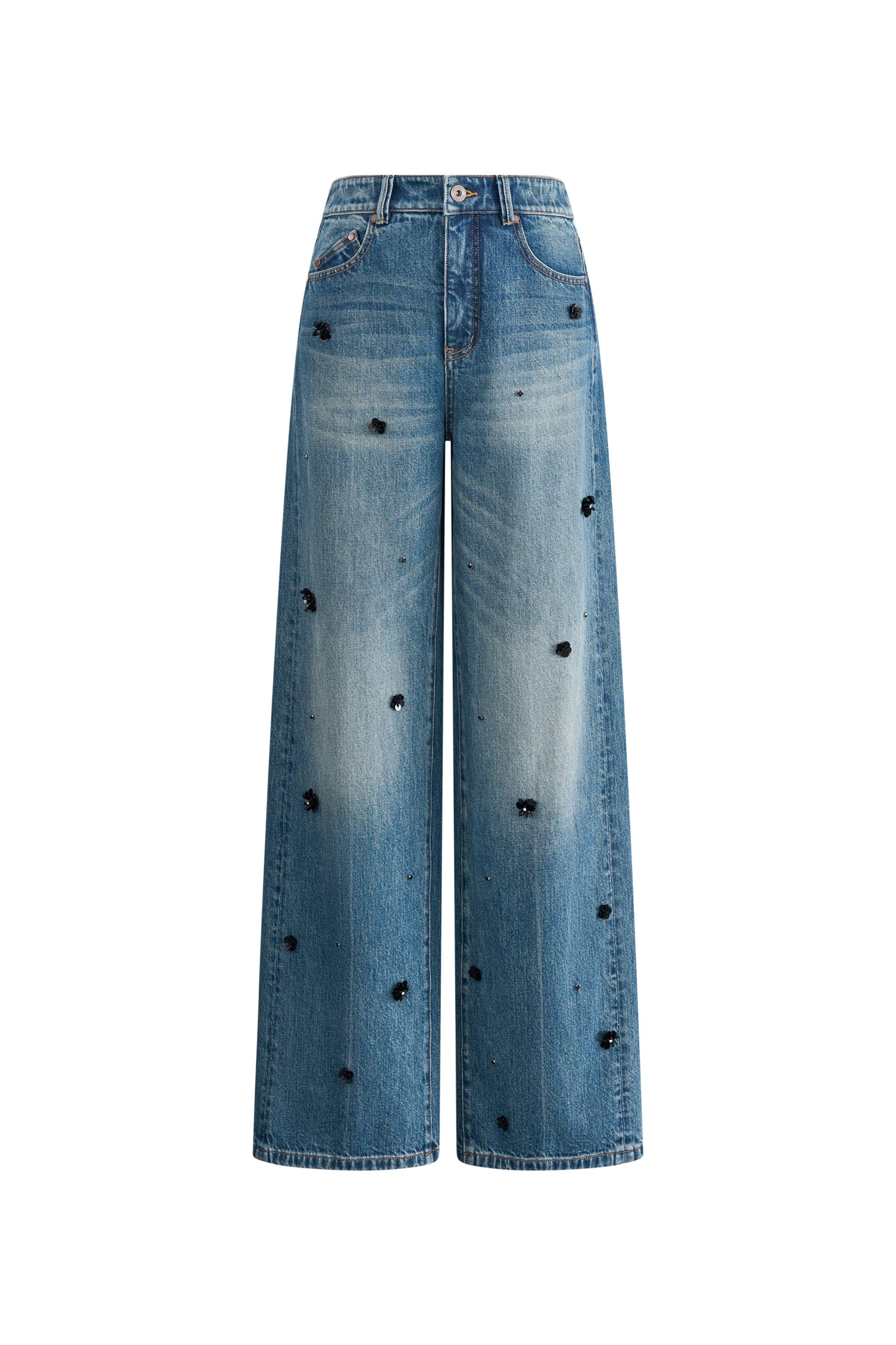 Imogen Hand Beaded Denim Trousers in Cotton Denim