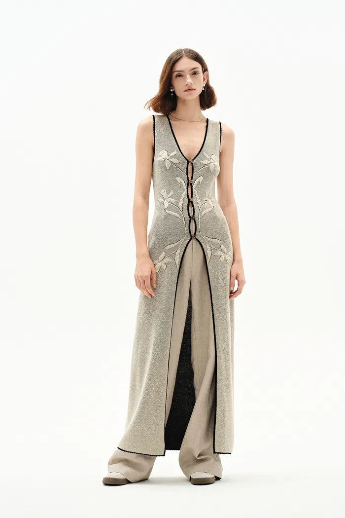Mazurek Sleeveless Long Slit Vest in Cotton Blend Knit