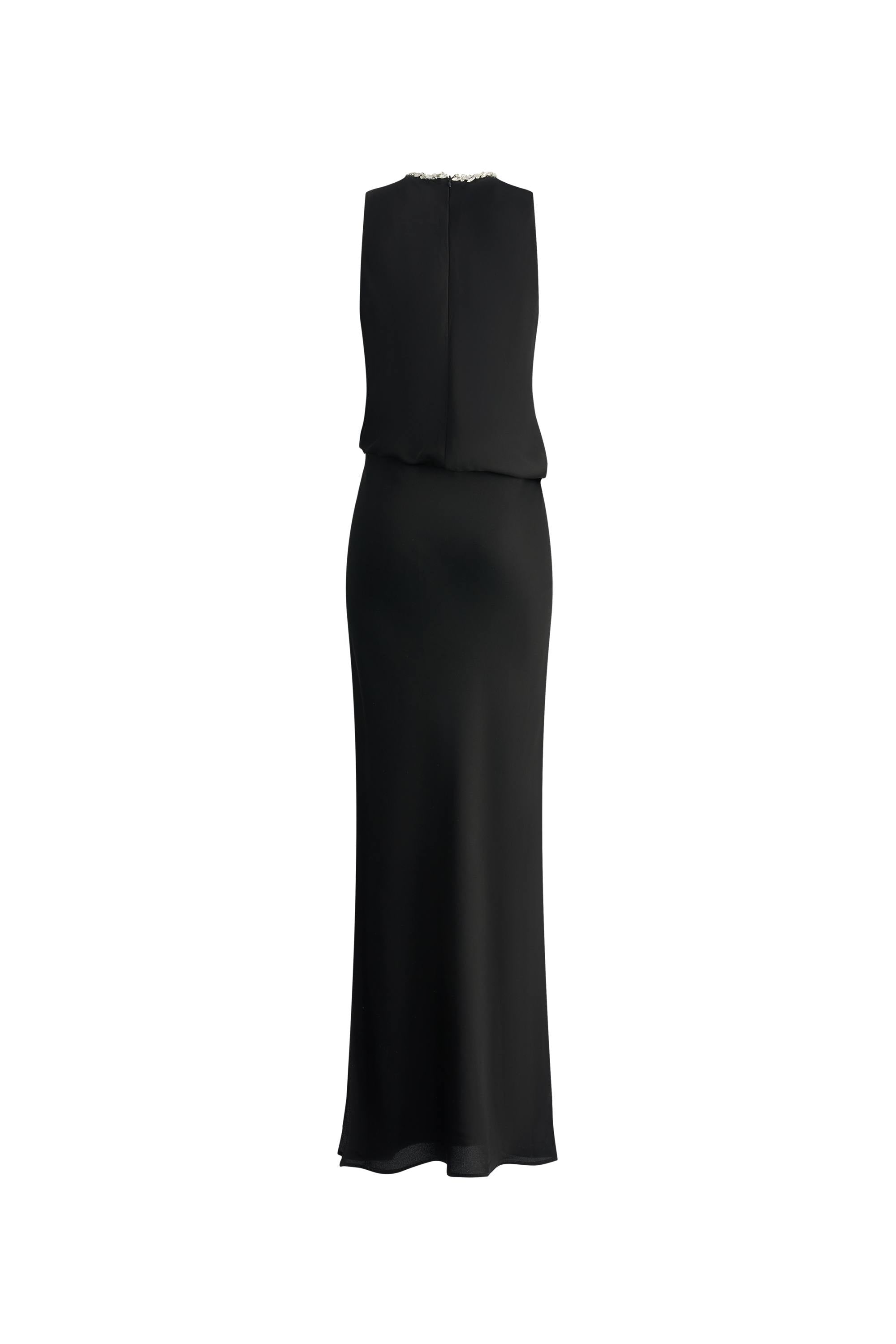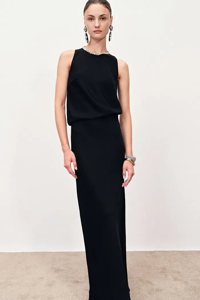 Odette Round Neck Hand Sewn Rhinestone Dress in Wrinkle-Resistant Fabric